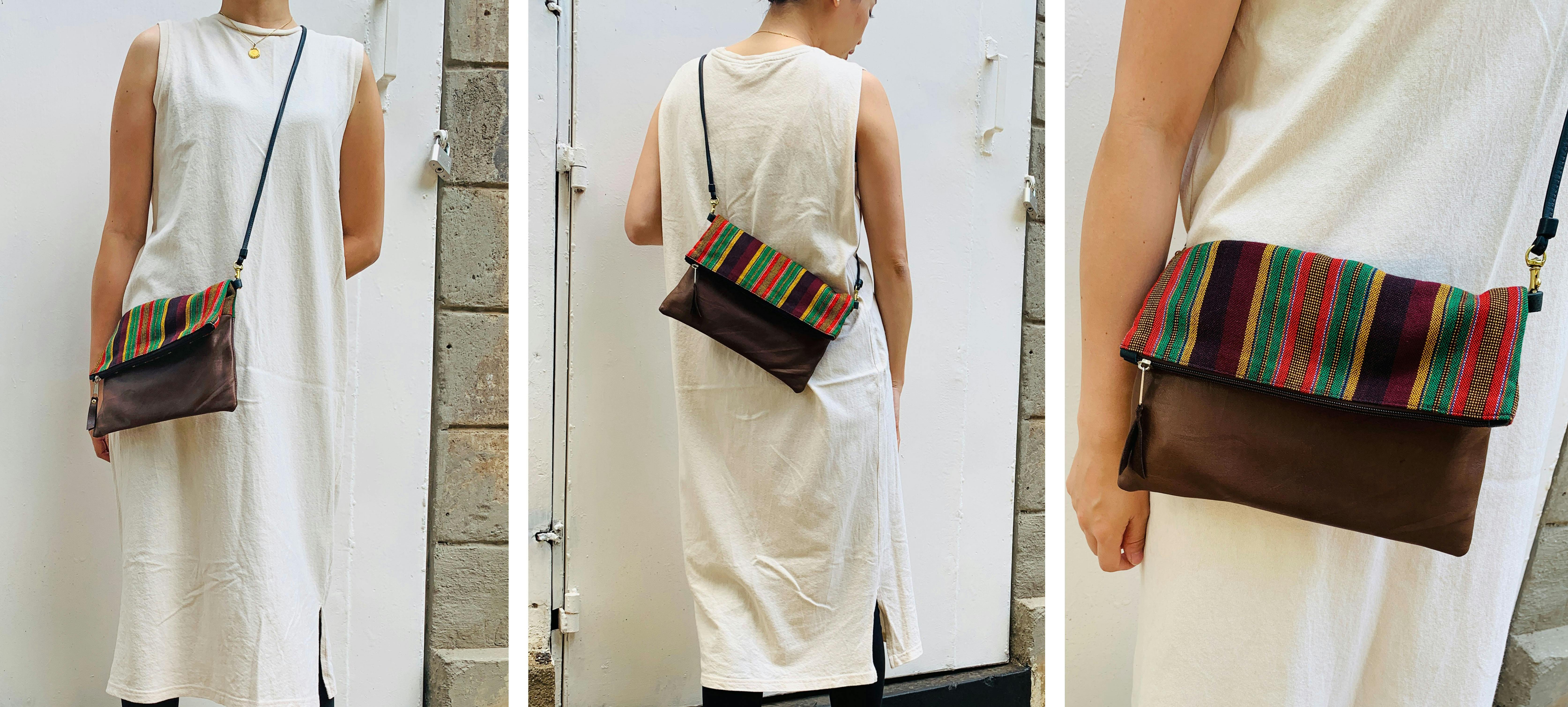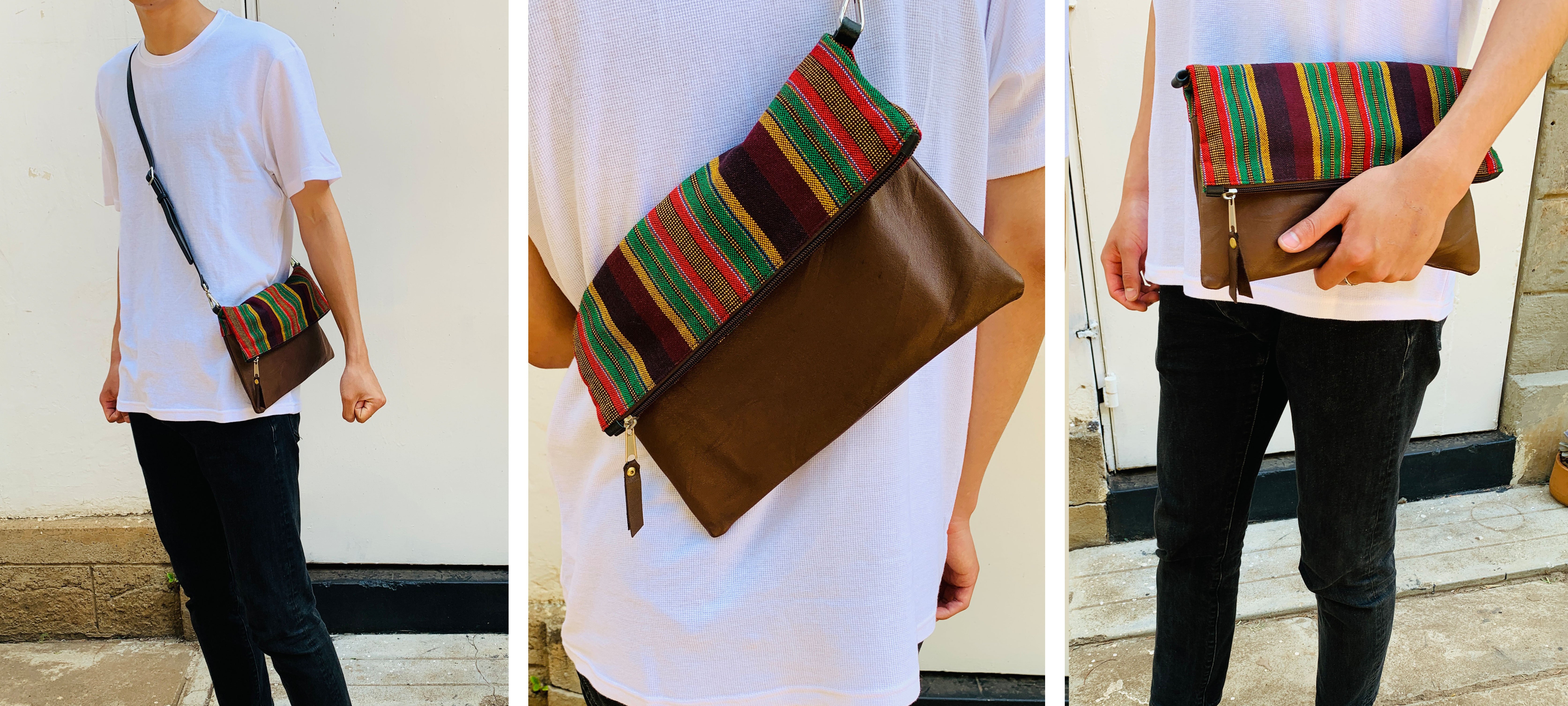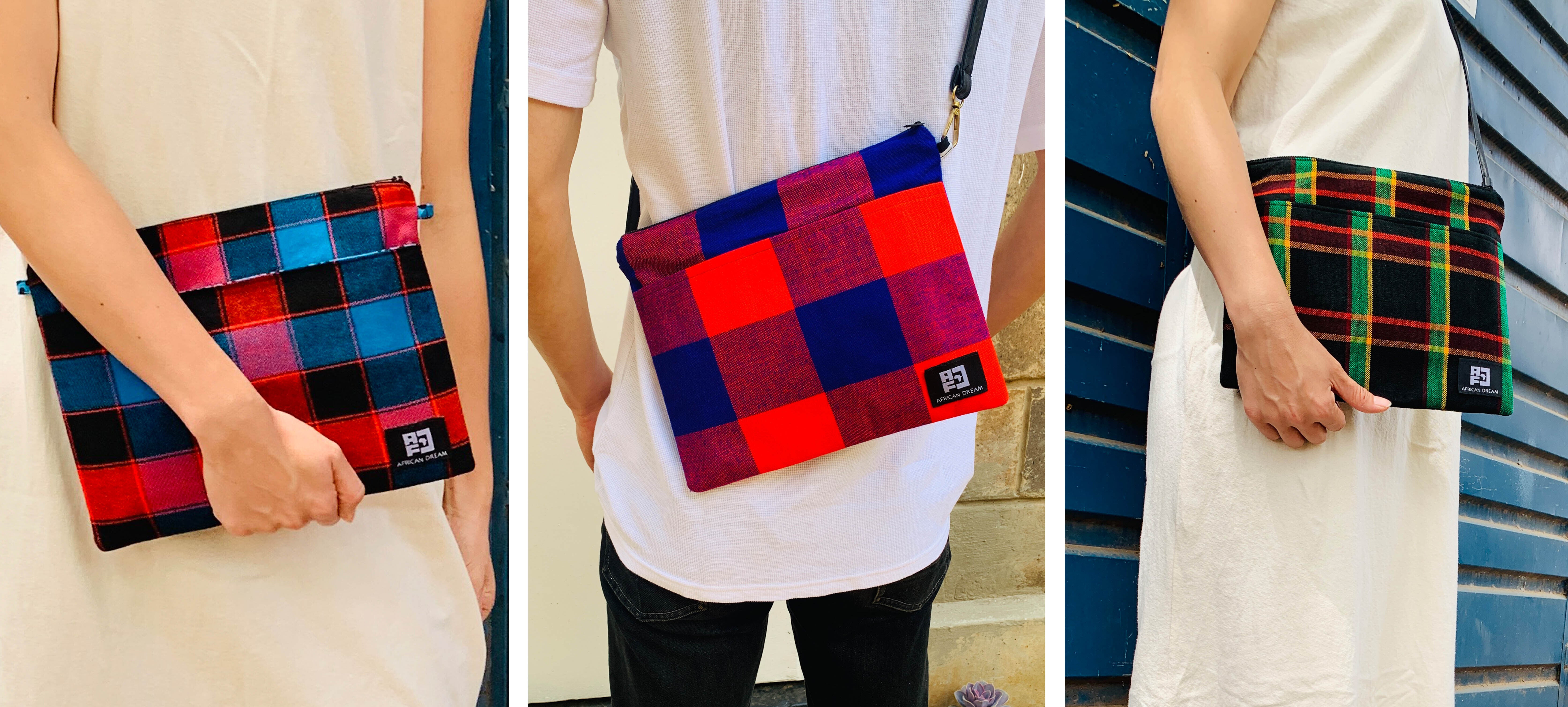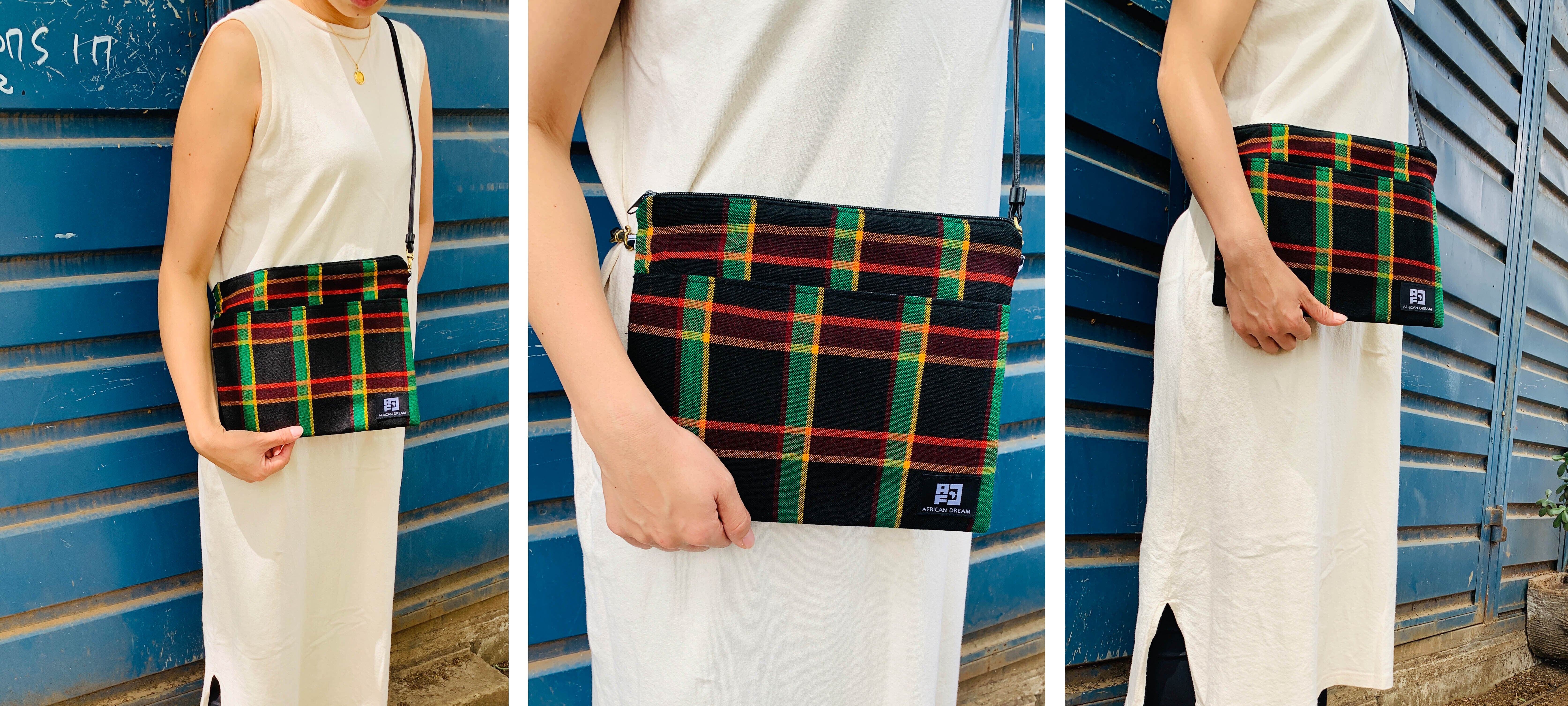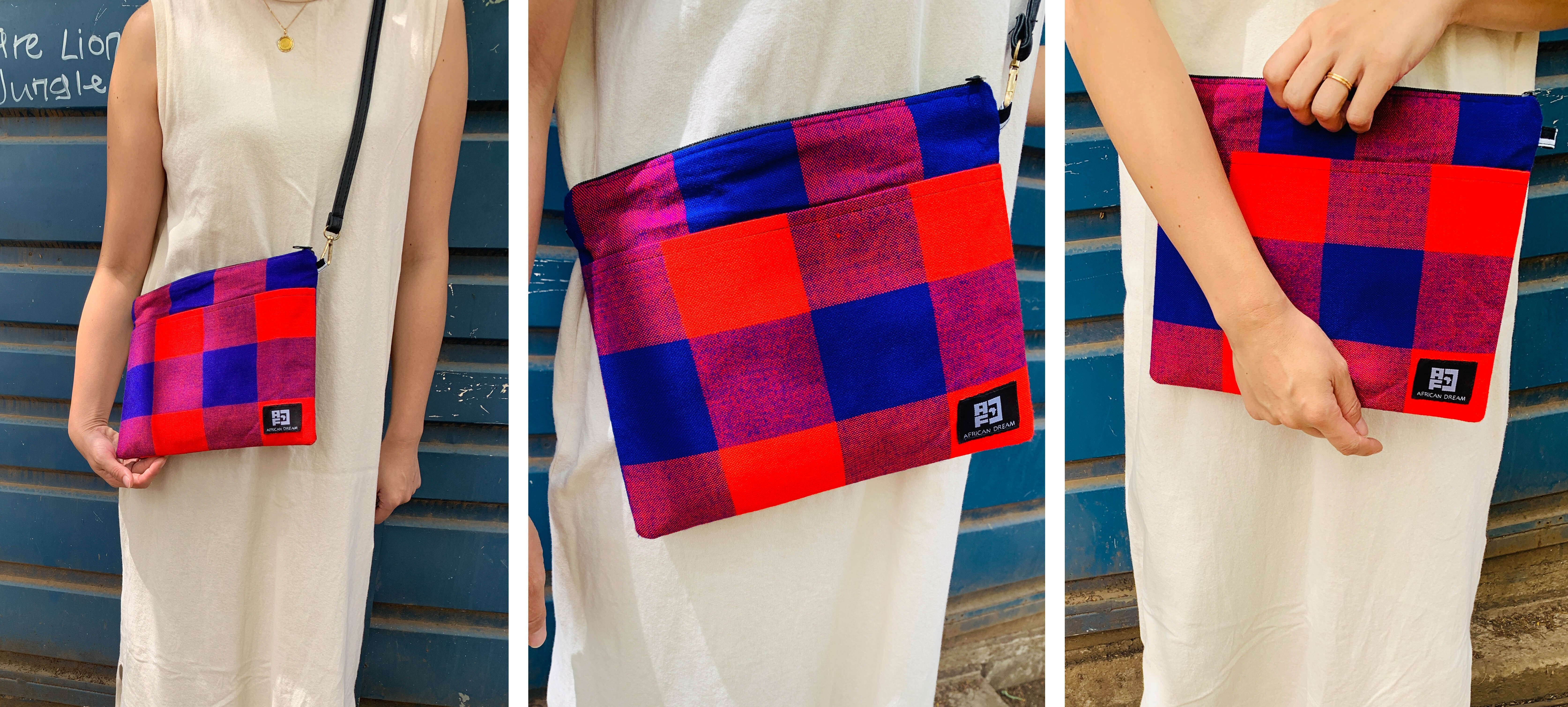 アフリカのカラフルで個性的な布や、古着の再利用レザーを使ったサコッシュでファッションを楽しみながら、商品の購入が現地の雇用創出・環境問題への取組みに繋がる、そんなプロジェクトです。