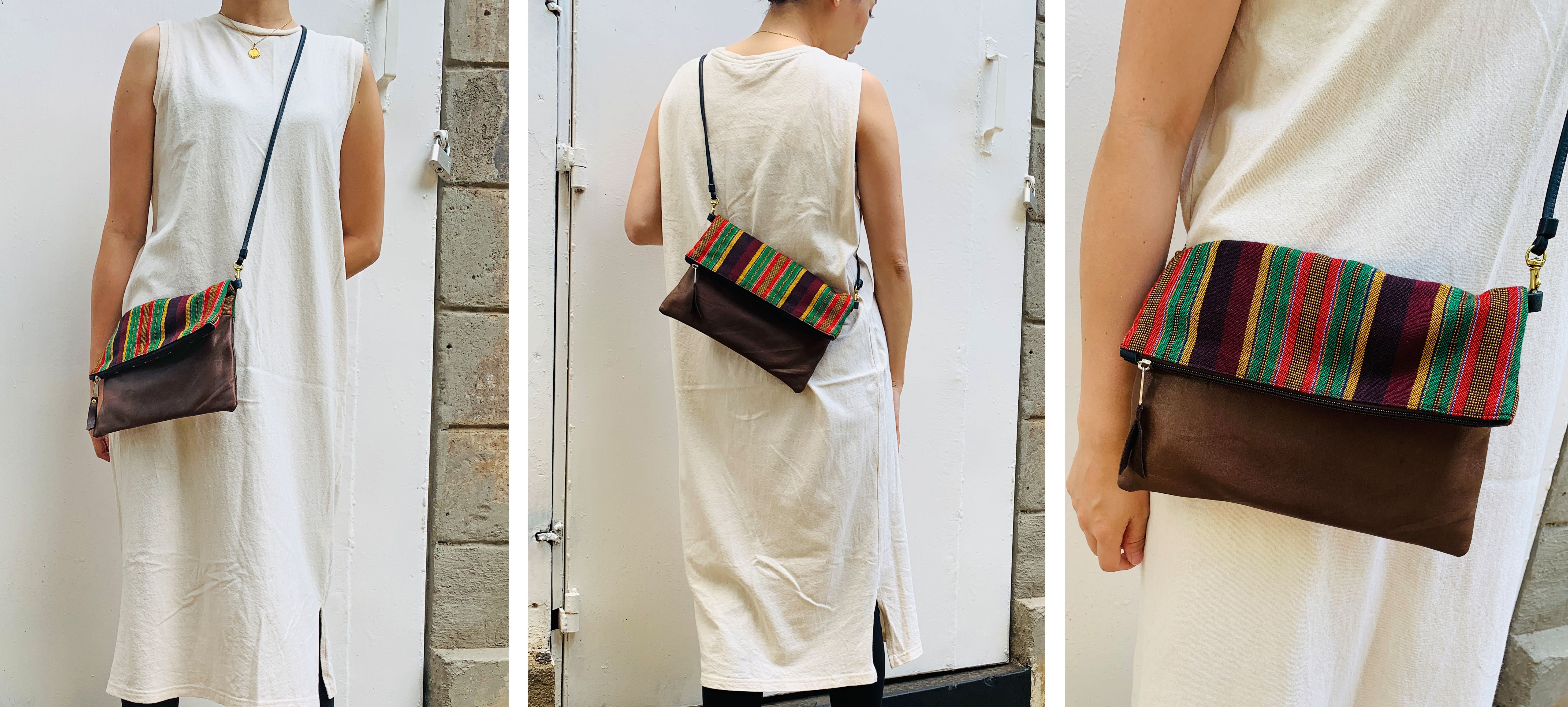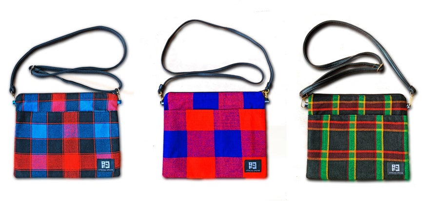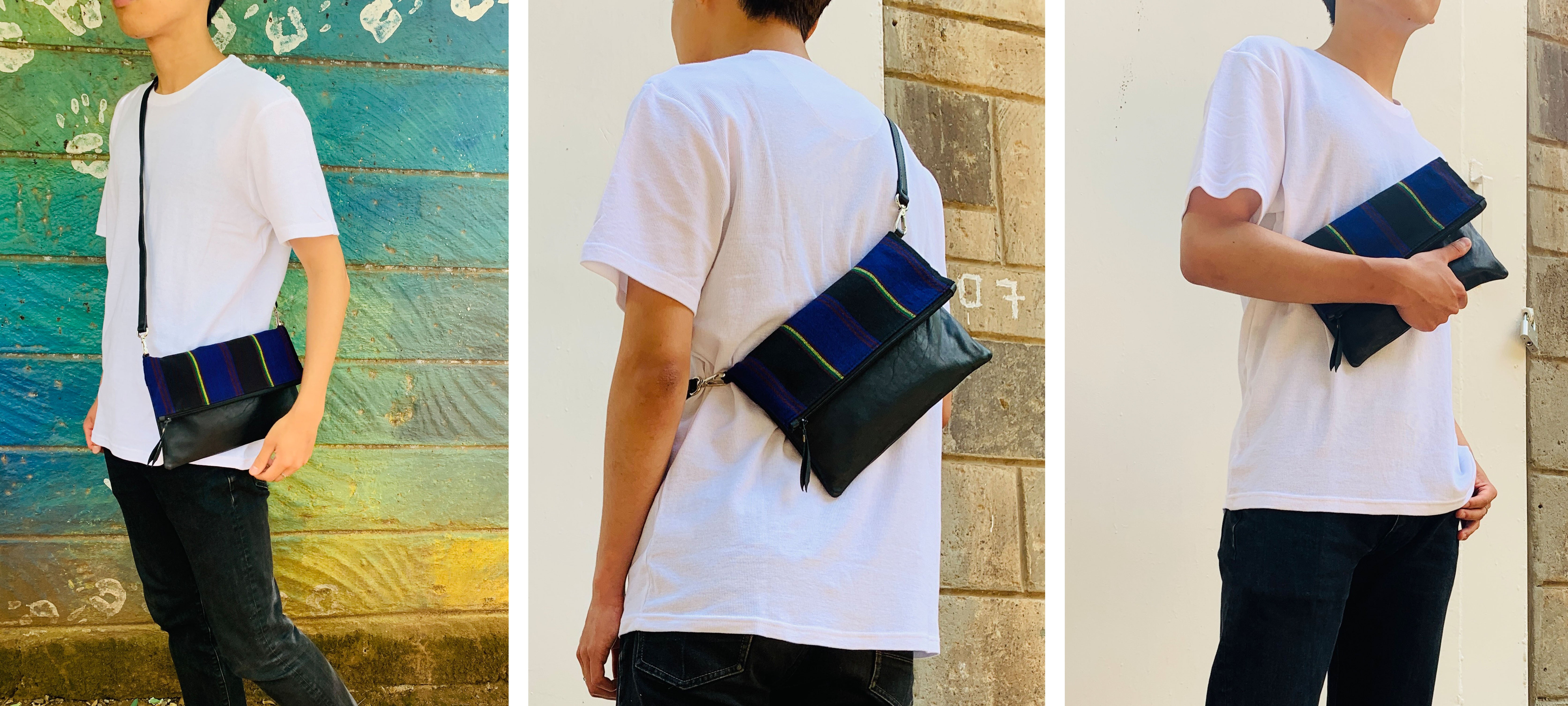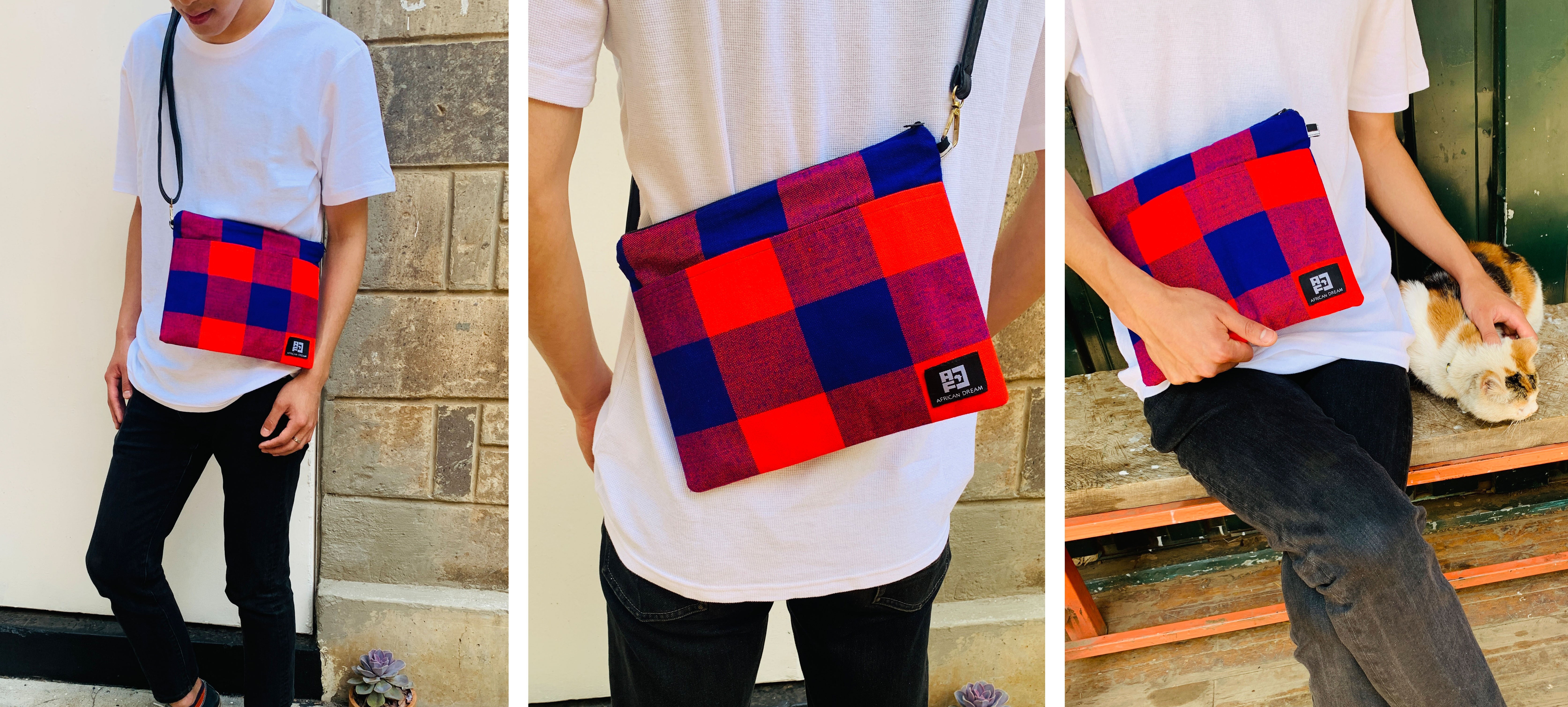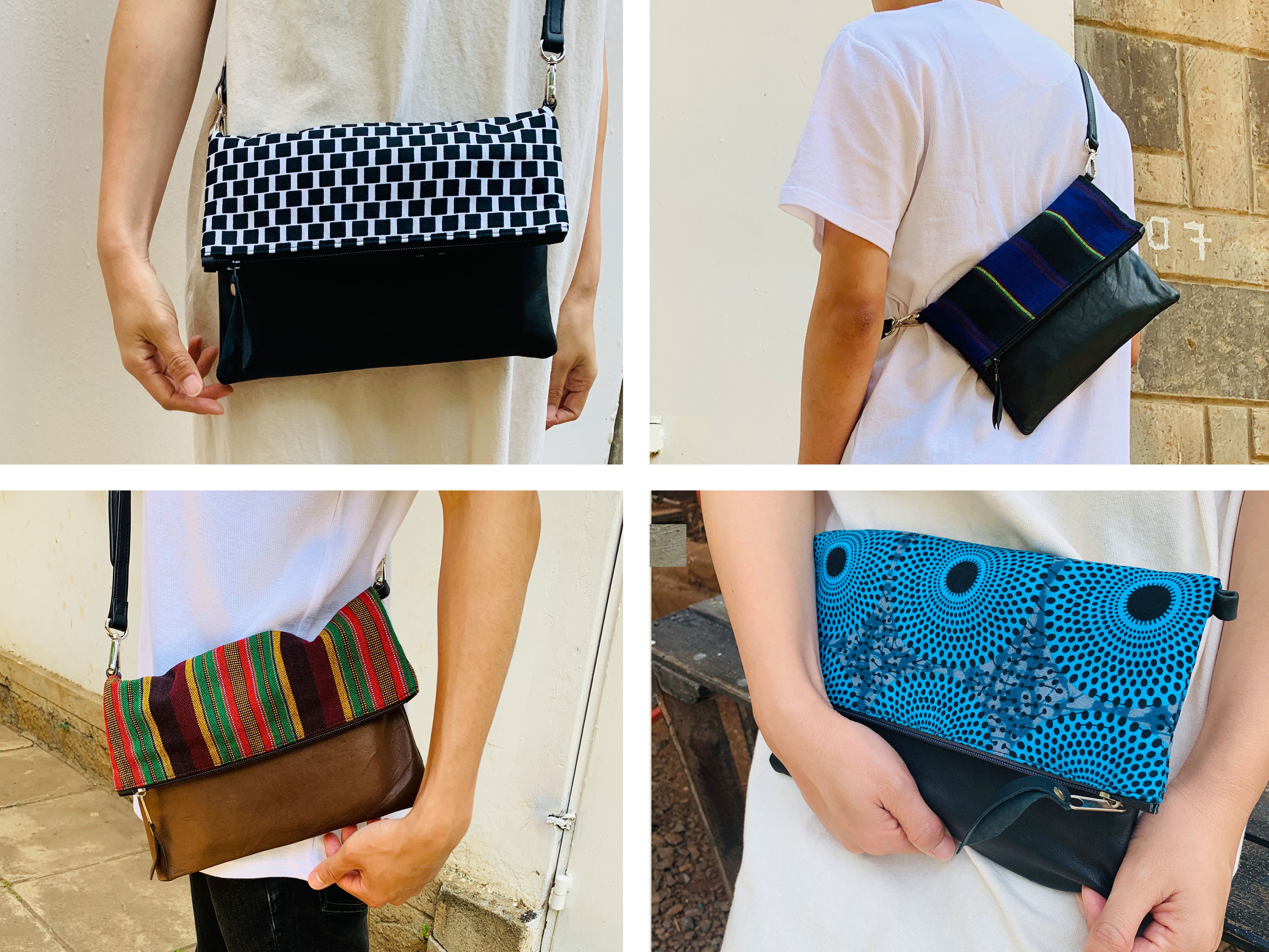 アフリカのカラフルで個性的な布や、古着の再利用レザーを使ったサコッシュでファッションを楽しみながら、商品の購入が現地の雇用創出・環境問題への取組みに繋がる、そんなプロジェクトです。