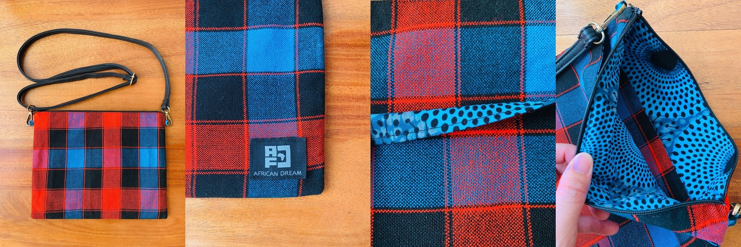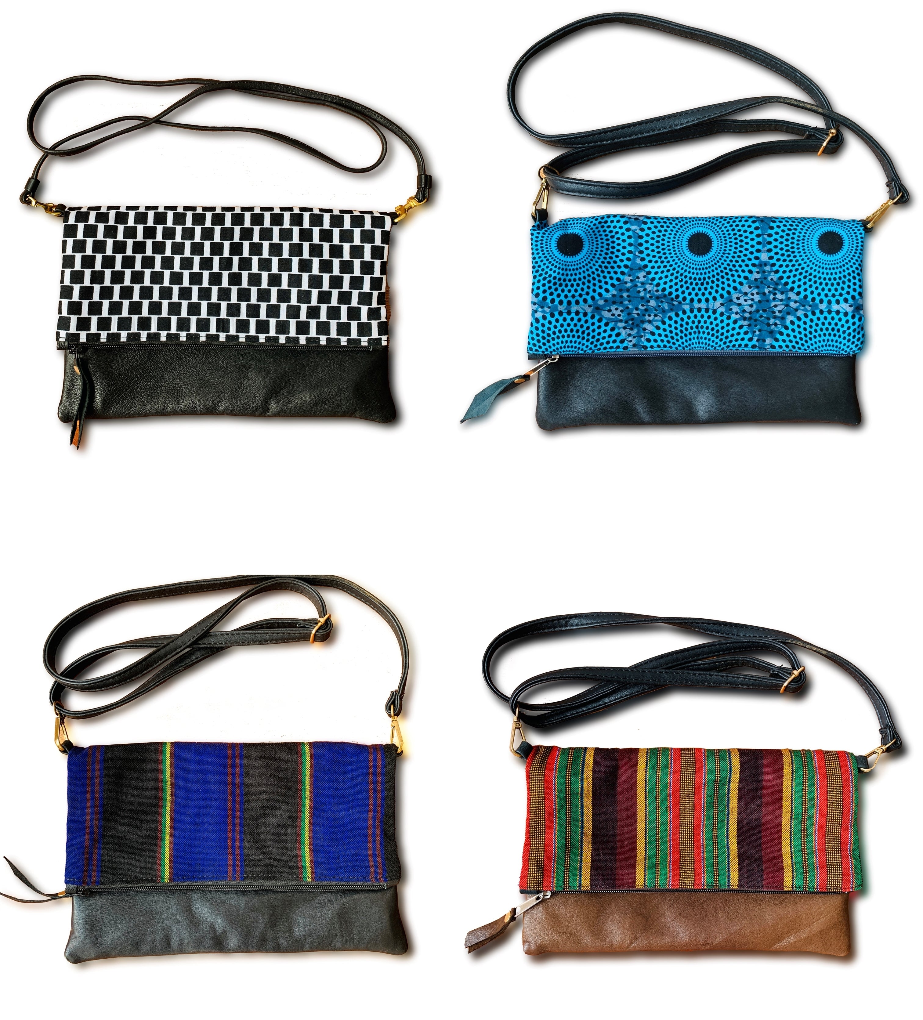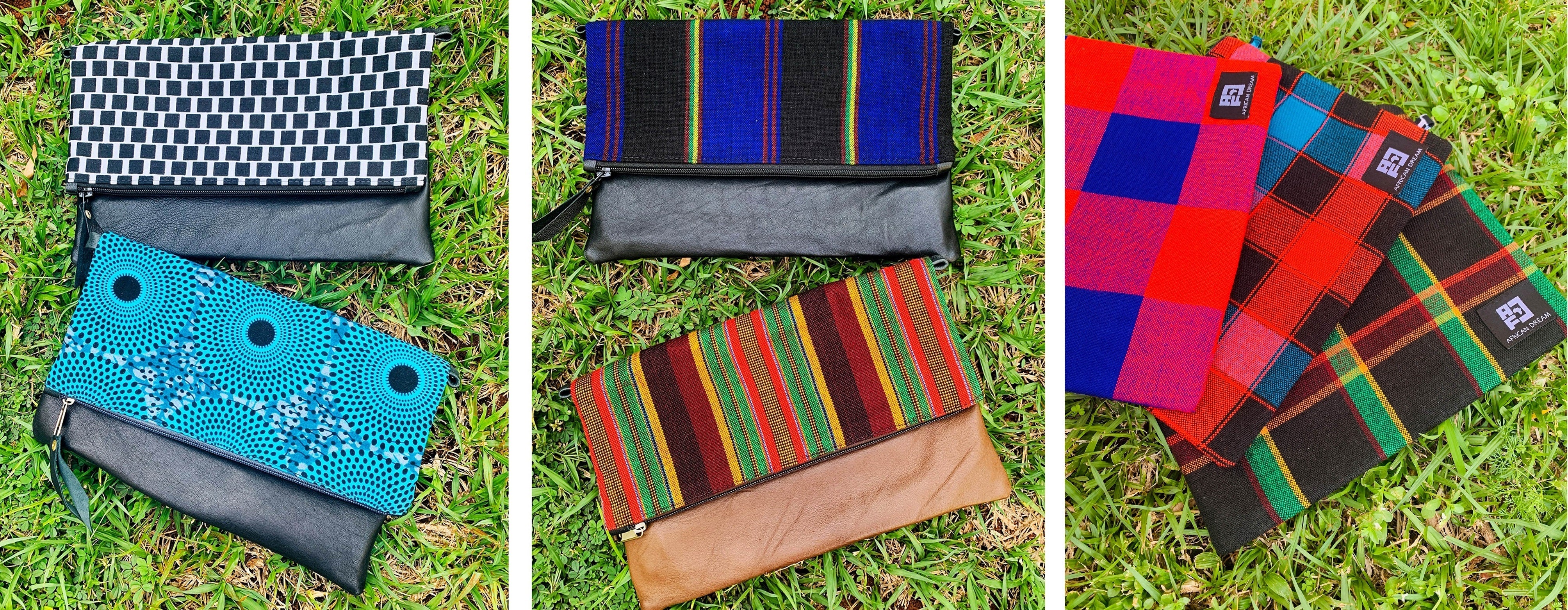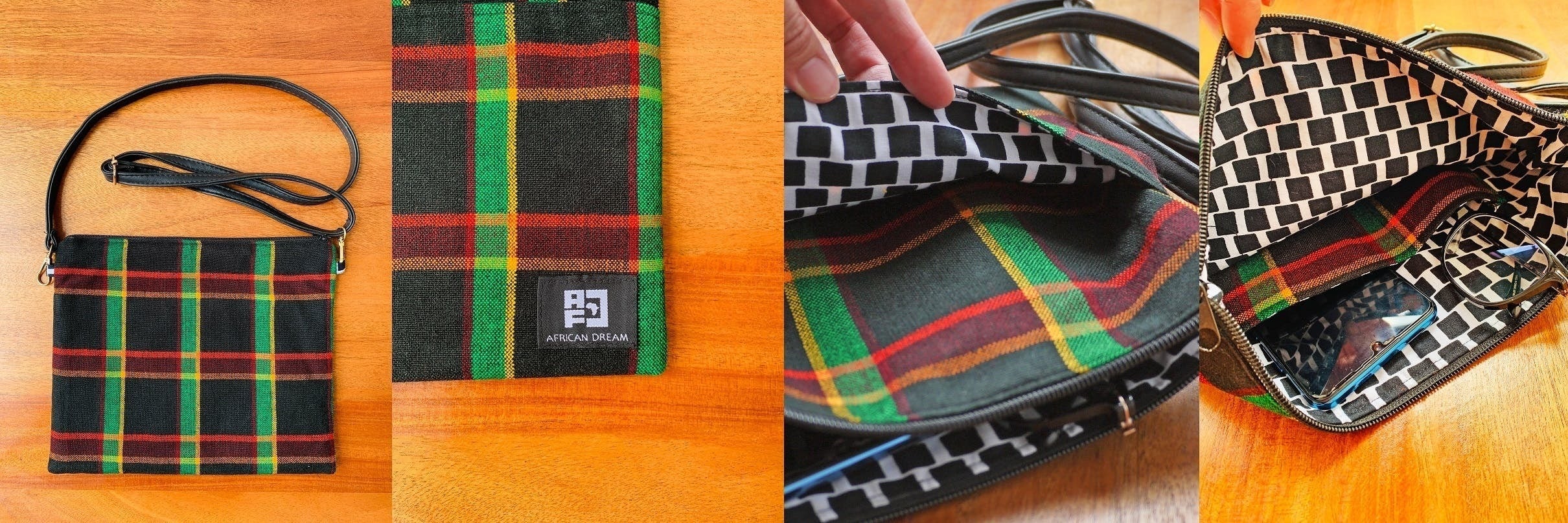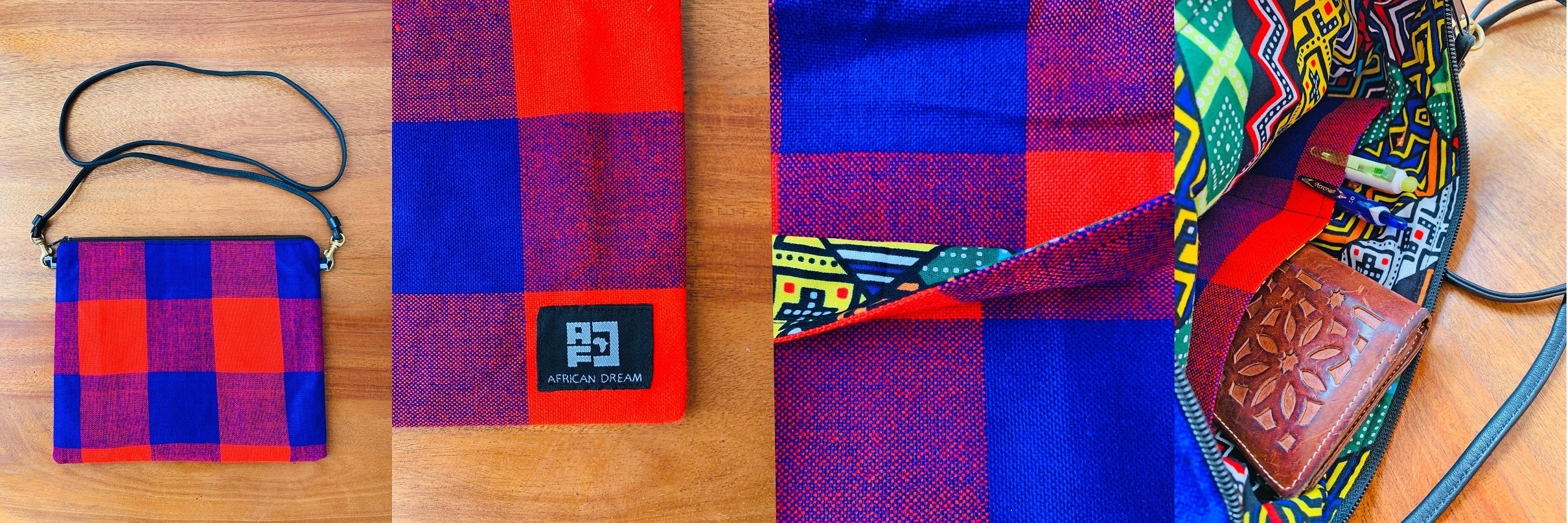 アフリカのカラフルで個性的な布や、古着の再利用レザーを使ったサコッシュでファッションを楽しみながら、商品の購入が現地の雇用創出・環境問題への取組みに繋がる、そんなプロジェクトです。