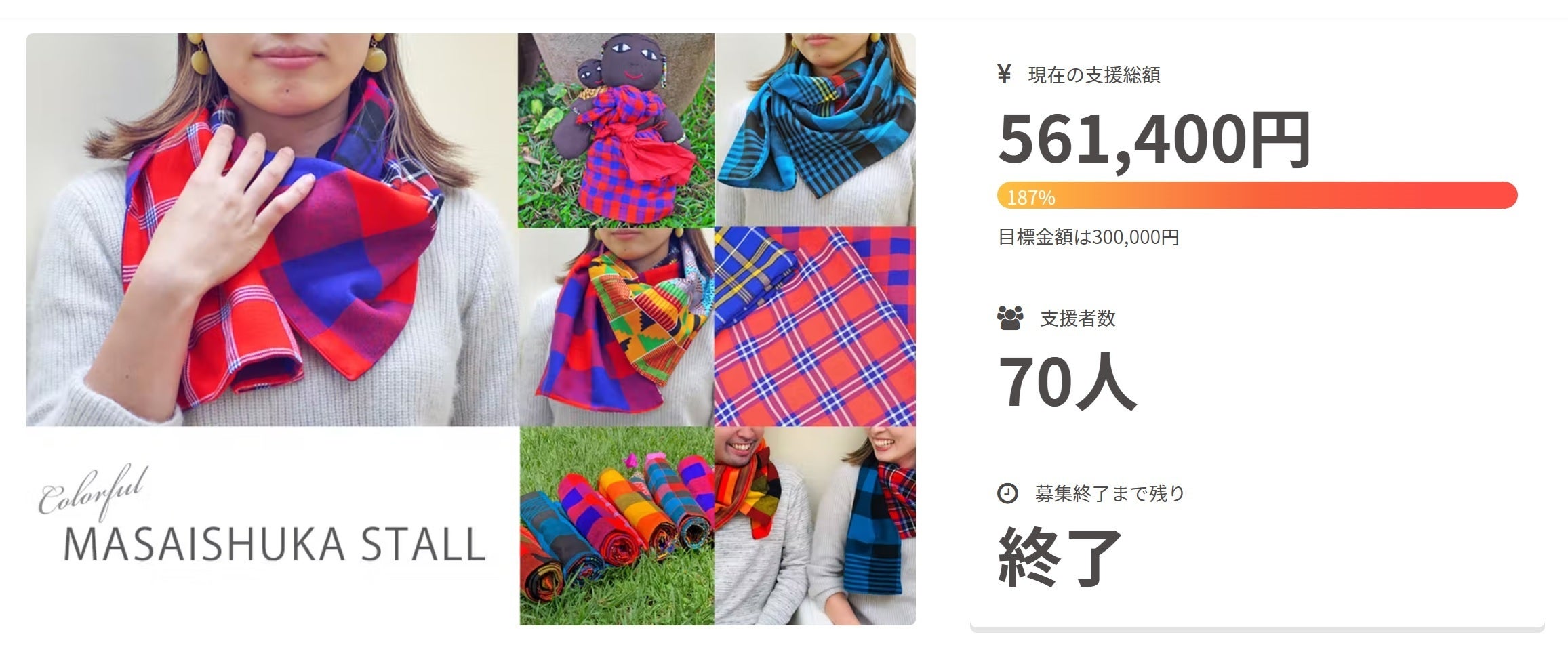 (第一弾プロジェクト :アフリカからお届け!一点もののマサイ族ストールでみんなホカホカ)