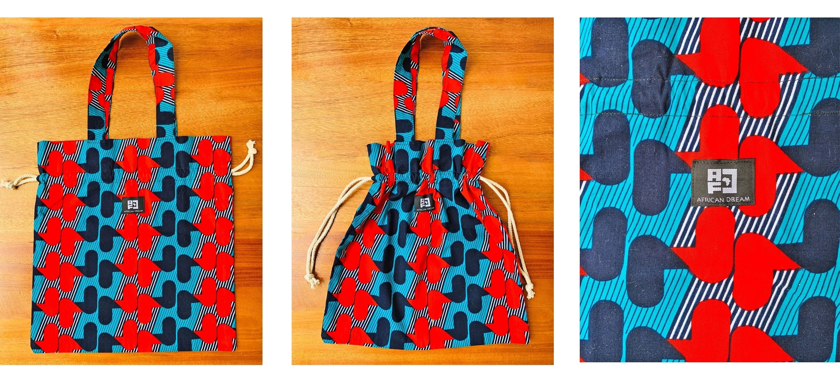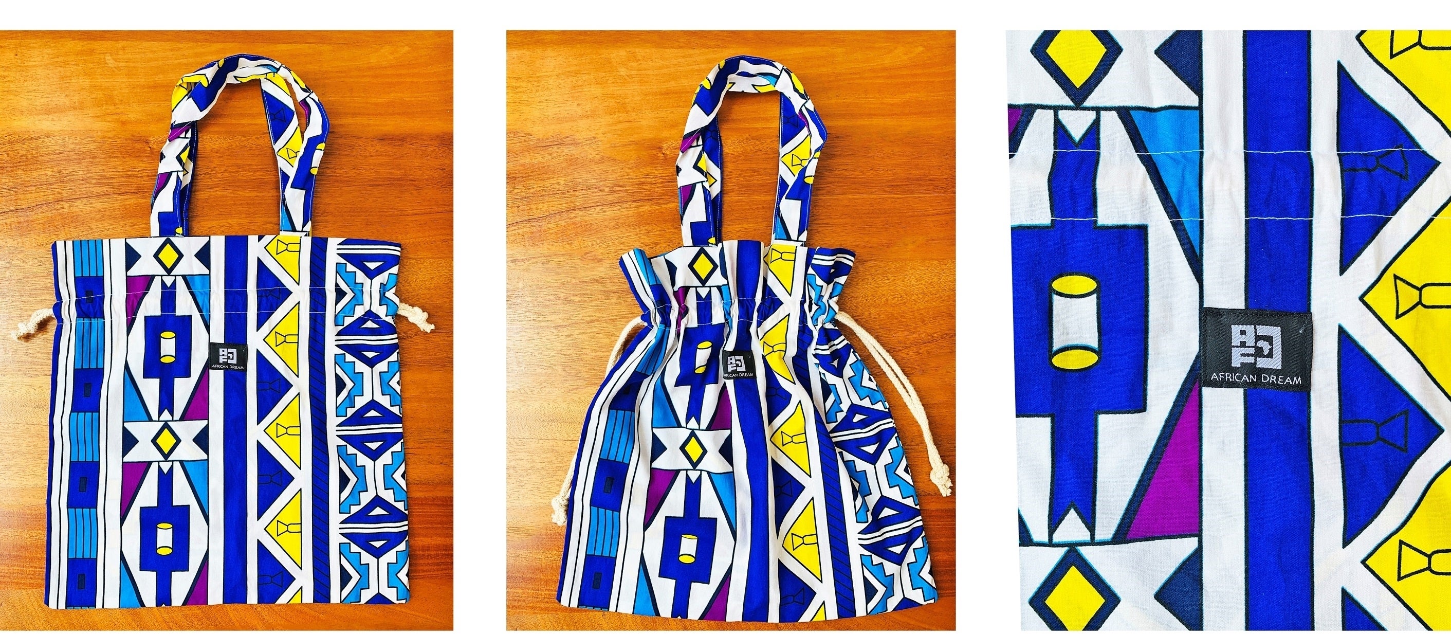 ・バッグおよびポケット内側のキテンゲ柄は実物と写真で柄が異なる場合がございます。