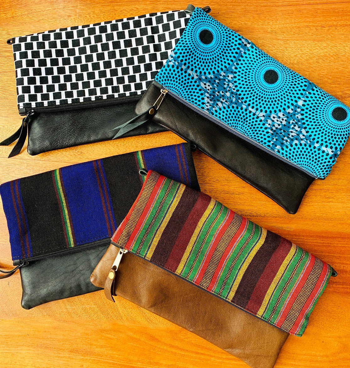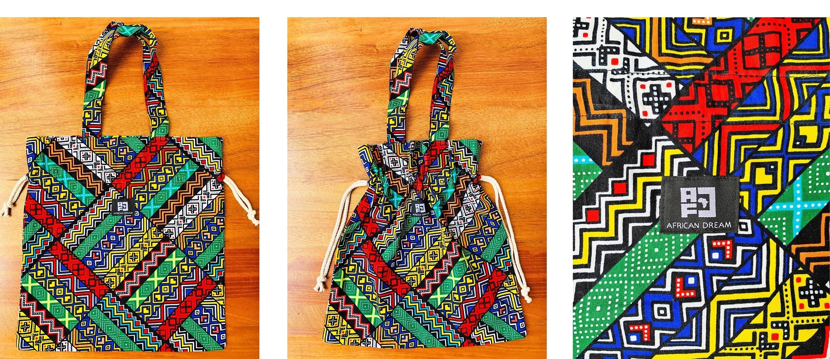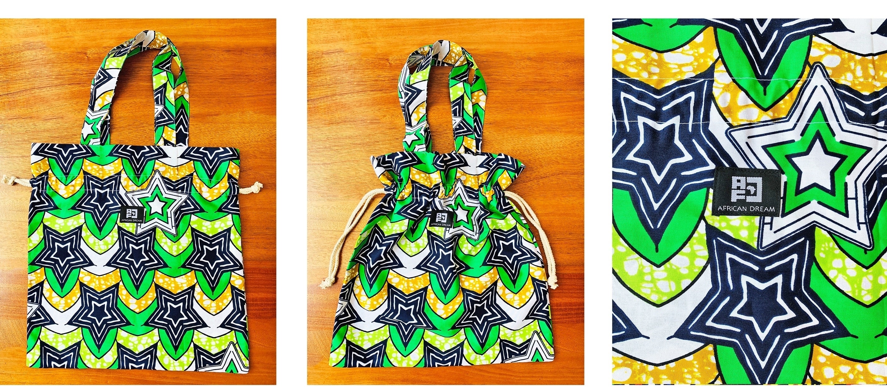 今回は、そのような魅力のあるアフリカ布や、古着のアップサイクルレザーを使ったサコッシュやエコバッグを企画しました。