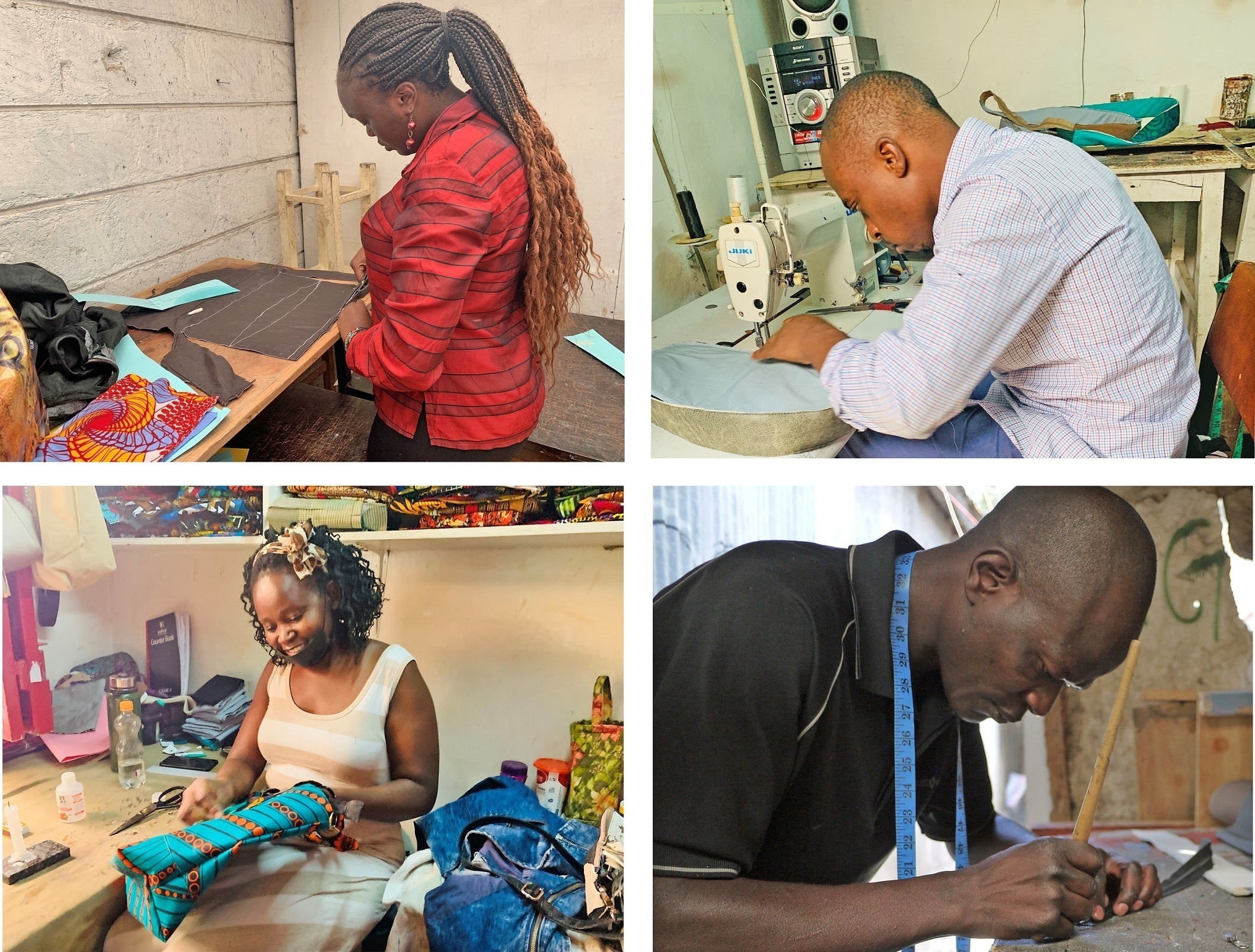 イタリアでバッグ作りを学んだ後、2012年からケニアでキテンゲとレザーを使ったバッグづくりを本格始動。現在ではスタッフ11名が勤務。