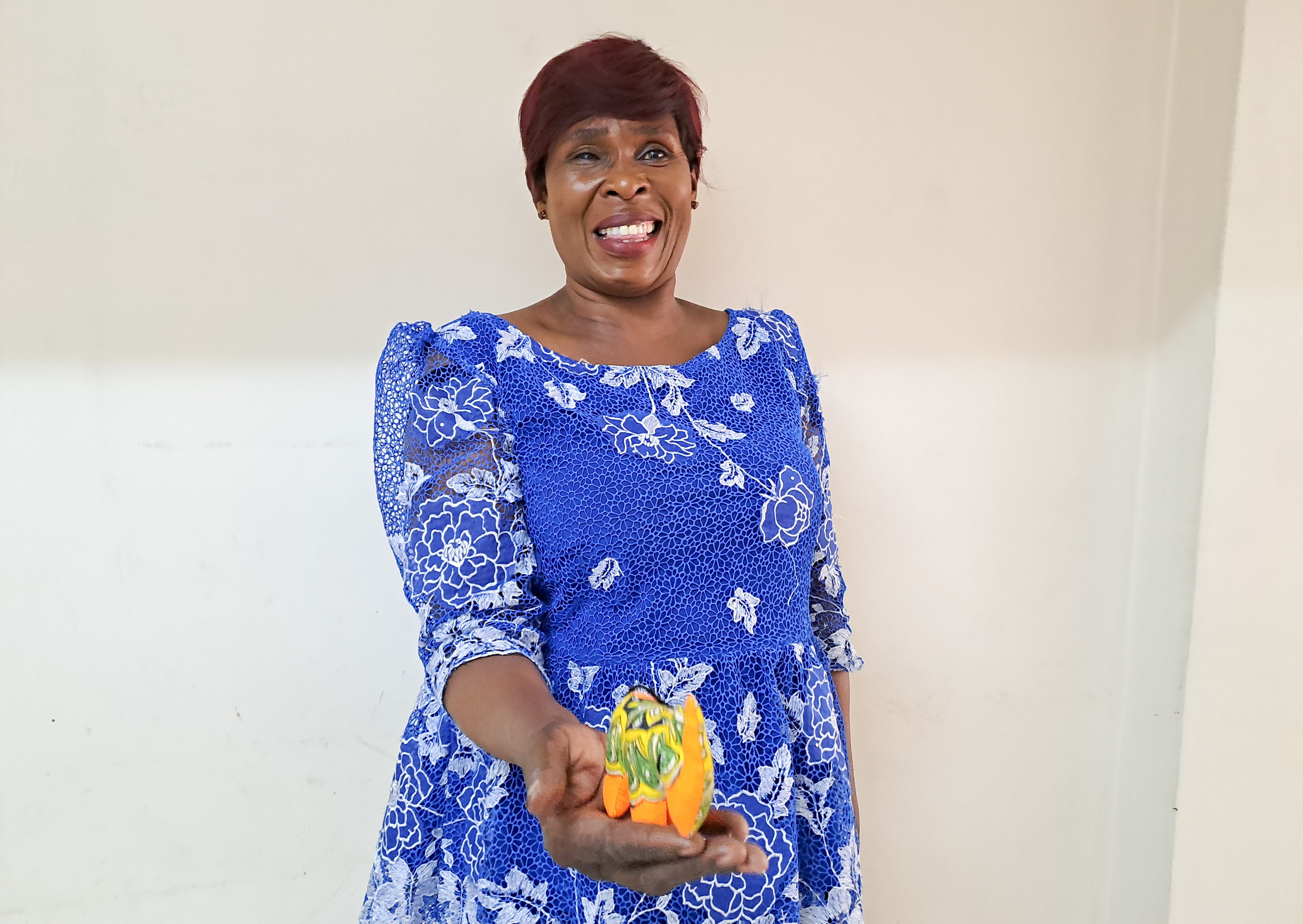 ウガンダからの難民としてケニアに移住、職業訓練サポート団体からの支援を受け、テーラーとなり、今では、彼女の作業場で、同じく訓練生達が彼女から学んでいます。