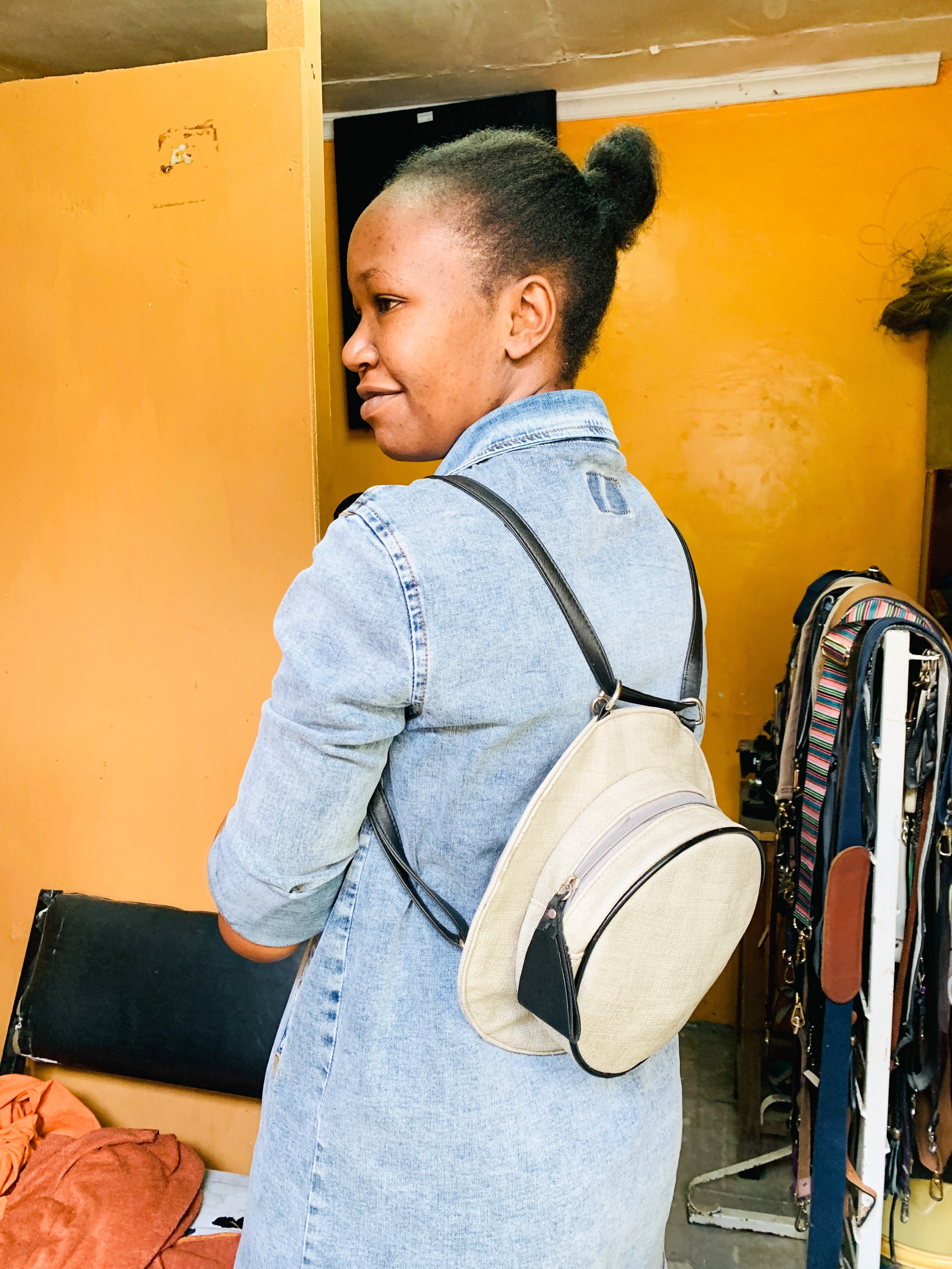 彼女はバッグブランド代表のアシスタントであり、顧客対応担当、パターンナー、古着マーケットでの素材探しもする、マルチタスクなスーパーマン。