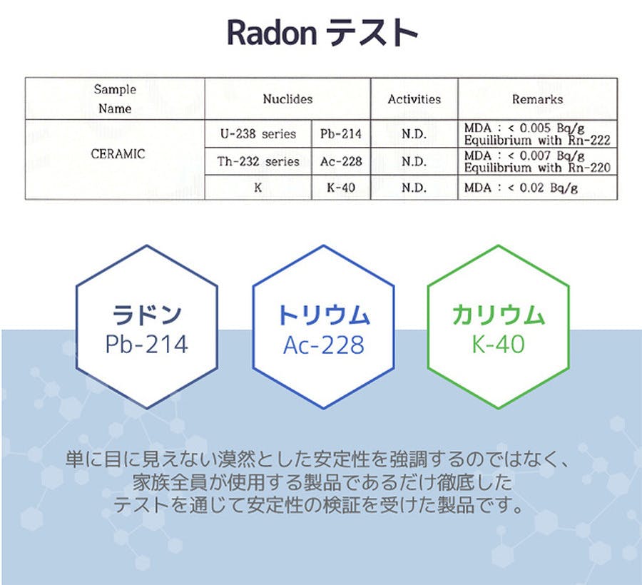 健康な髪を保つため、ヘアドライヤーからのラドン放出までカット[不検出]しました。