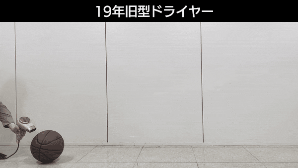 旧型の弊社ドライヤーとピュアリズムゼロのドライヤーを使用し、バスケットボールを動かしてみました。