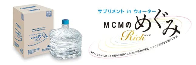 常識はずれといえば、レギュラー商品である「MCMのめぐみ Pure」の倍量のサプリメントMCMを配合した「MCMのめぐみ Rich」も2015年10月にデビューしていますが、ウォーターサーバーで提供しているお水でRichのように高いものは他には有りません。にもかかわらず、品質を信頼するお客様から長年支持されています。