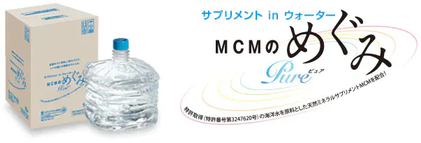 特許取得のサプリメントを配合した、ちょっと変なお水「サプリメント in ウォーター MCMのめぐみ」のメーカーです。