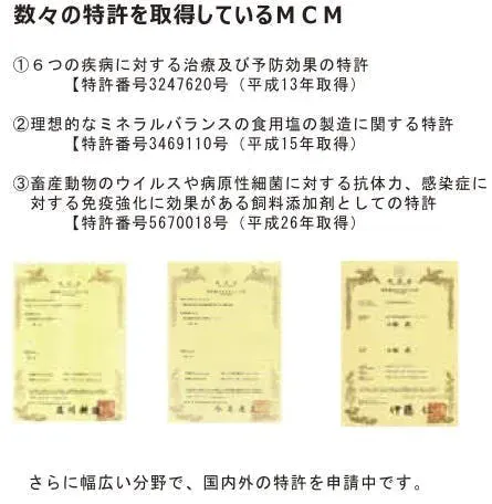 配合しているのは、特許取得(特許番号第3247620号)の天然ミネラルサプリメント MCM(Marina Crystal Minerals)。