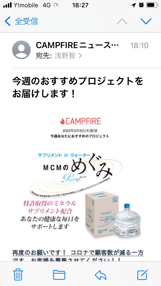 昨夜(2022年3月3日)のCAMPFIREニュースレターを見てビックリ!「今週あなたにおすすめのプロジェクト」のトップにMCMのめぐみのプロジェクトがああああ!ありがとうございます。改めてよろしくお願い申し上げます。