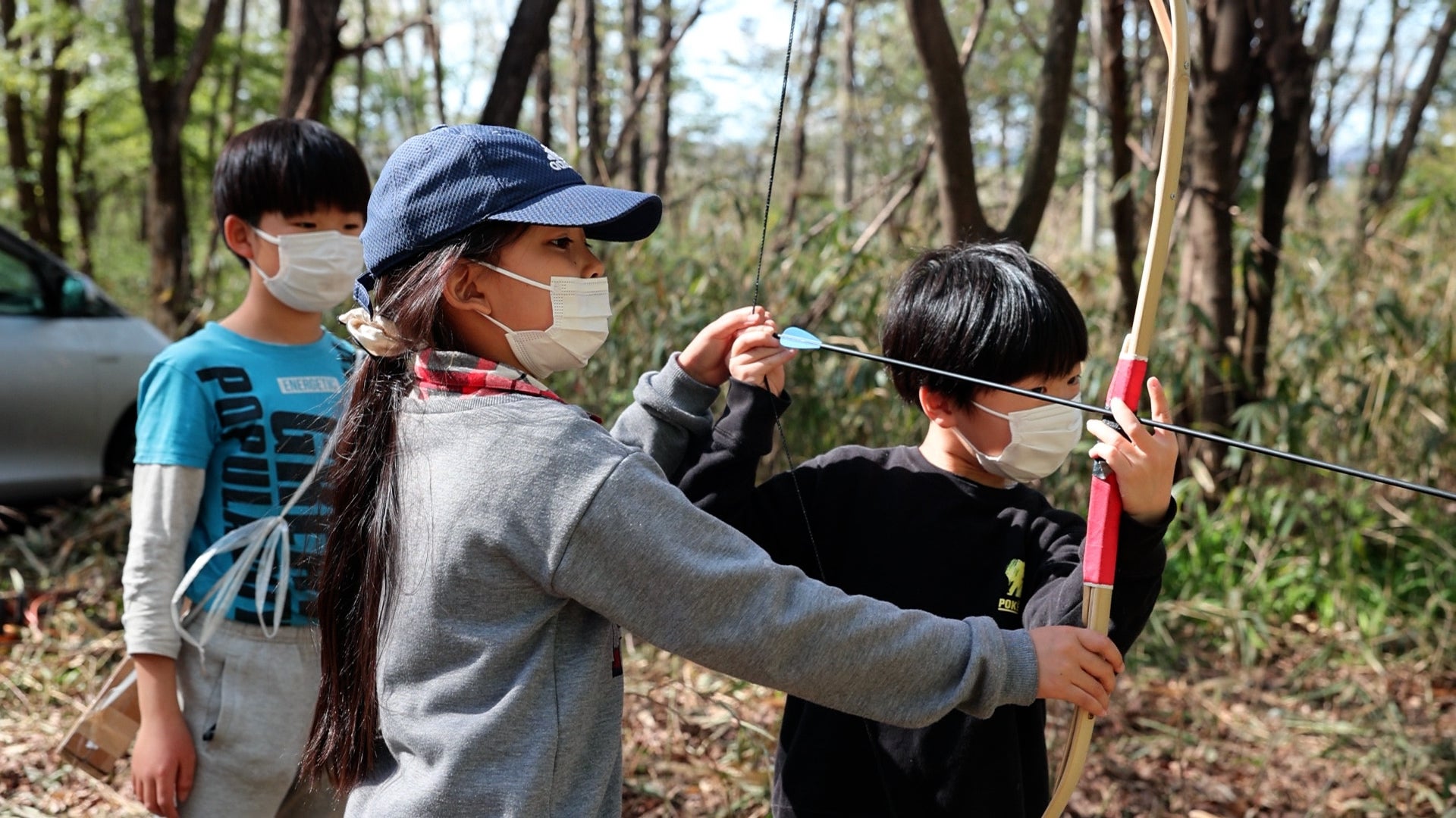 半弓で遊ぶ子どもたち