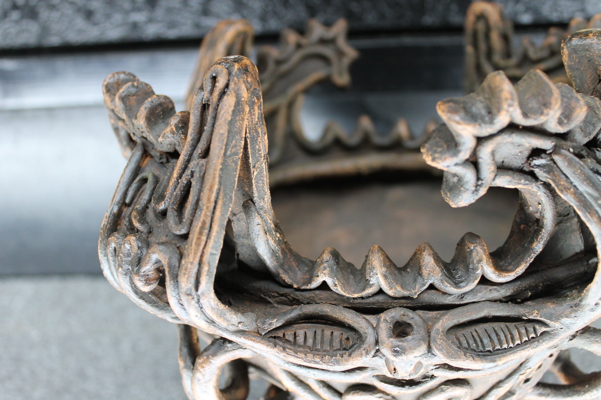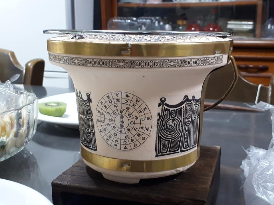 七輪は火焔土器が元祖かと勝手に考え、七輪に縄文の文様を入れてみた。改めてよく見て考えてみるととても似ていると思った。焼き鳥で「一人縄文ゴッコ」を楽しむ。悠久の古代に思い、浸る時間がいいのかと思う。