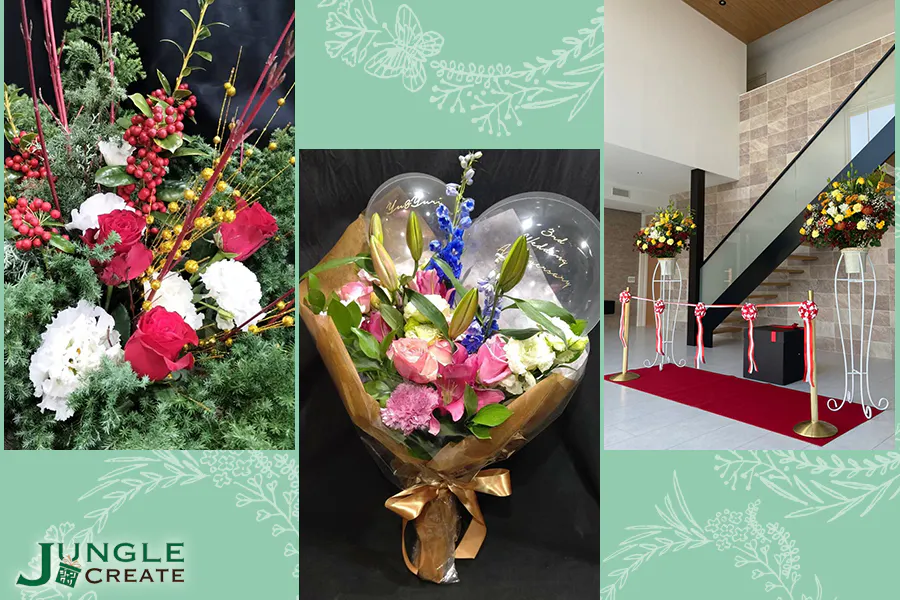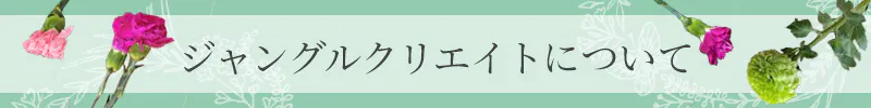 ジャングルクリエイトは代表の宮原が「お客様の想いを形に、感動の文化を創造する。」を理念とし、学生時代からの幼馴染の私を誘い立ち上げた、お花をはじめとする様々な贈り物を提供できるギフトショップです。