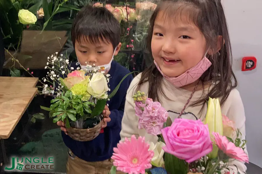 このような背景からジャングルクリエイトはギフトショップとしてお花を取り扱う中で、上記のような花育(はないく)による知育教育を広め日常的にお花に触れ合う・興味をもっていただける体験型商品として「知育花」を通し、子ども達へお花と触れ合う習慣が根付くように 発信していきたいという想いからスタートさせました。