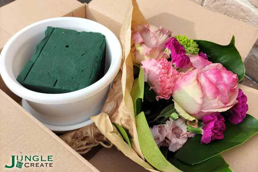 ①鉢②生けこみ用スポンジ③ミニ花束(生花)