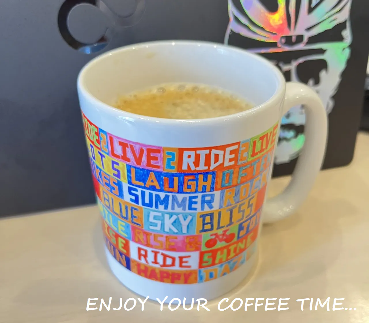 ウェアを扱うお店のため、匂いがでるようなしっかりした食事はなかなか提供できませんが 温かいドリンクにCYCOLOGYデザインのマグカップを使用したり、ここでしかいただけないオリジナル・スイーツを楽しんでいただけます。