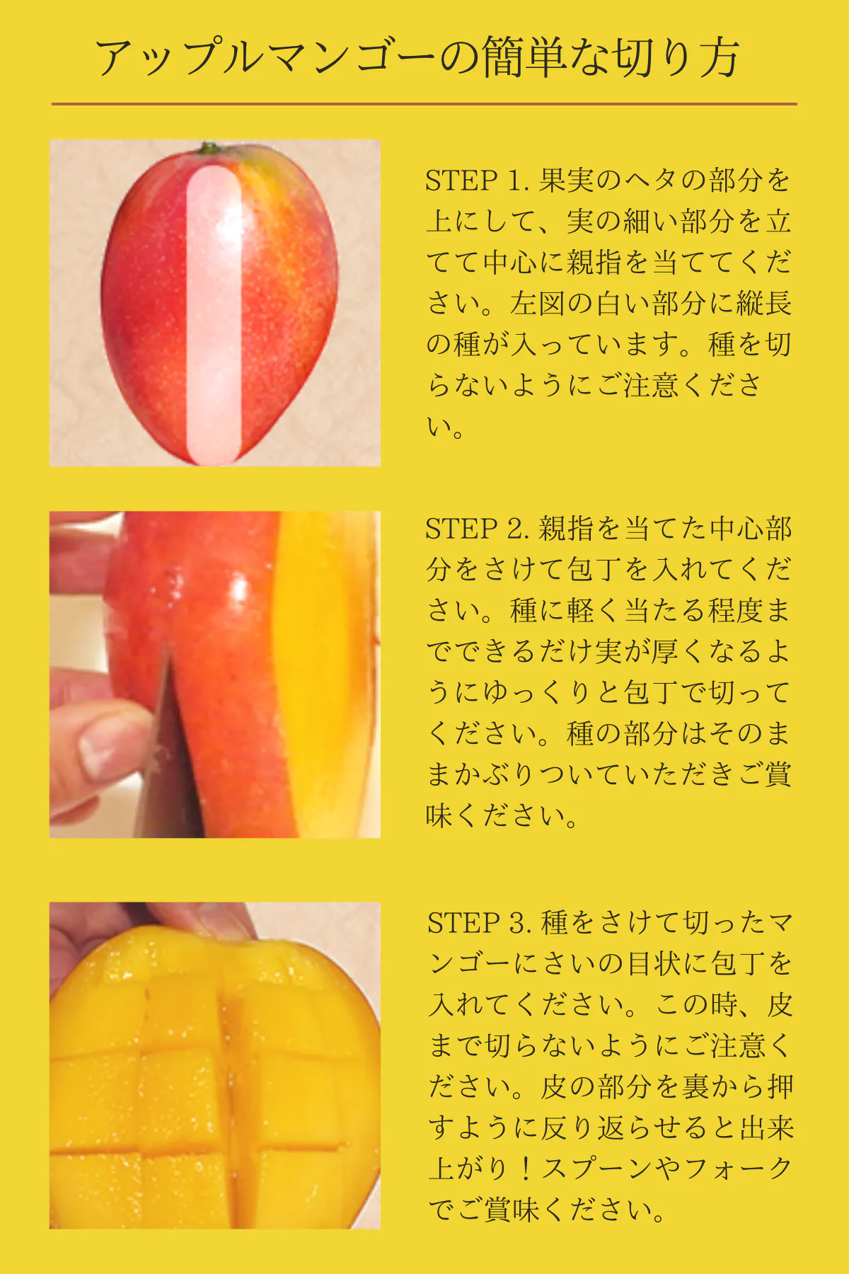 マンゴーの品種はアップルマンゴー、糖度は約15度~約18度です。