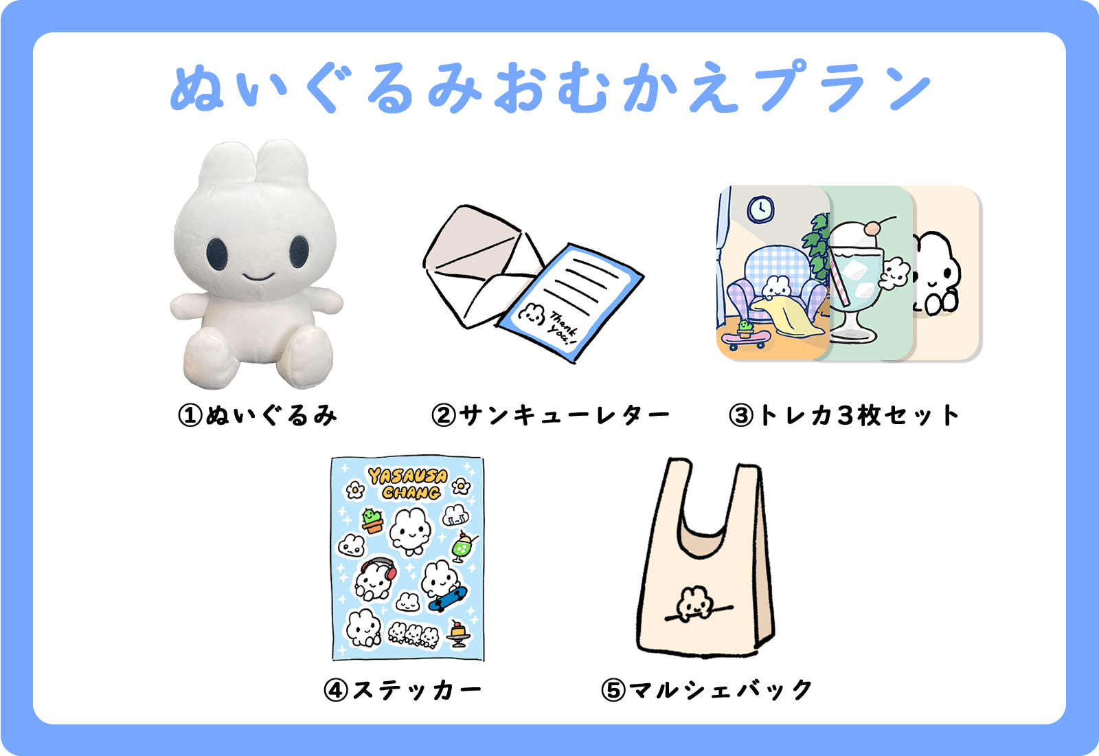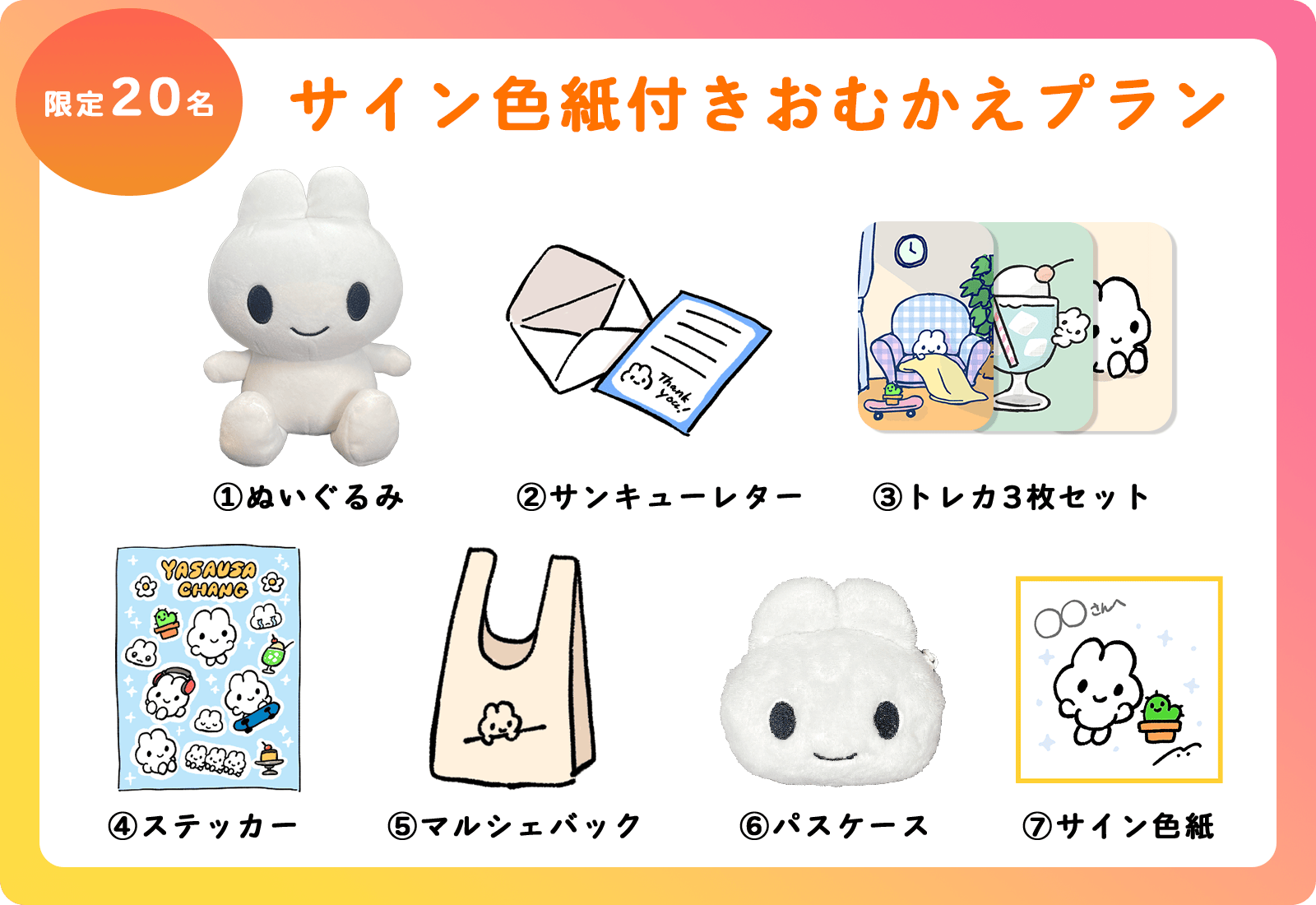 シール(やさうさちゃんやサボテン)を予定しております。