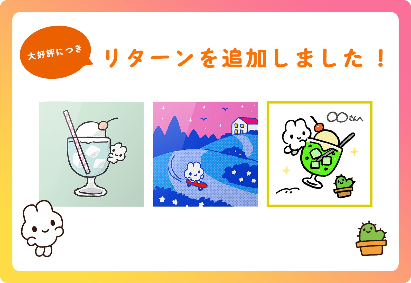 CAMPFIRE限定のやさうさちゃん キャンバスアート2種と