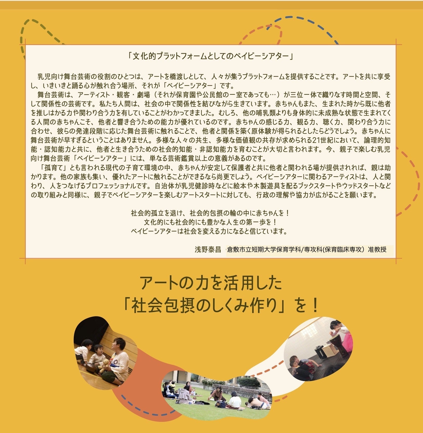 【関連分野での活動歴/実績など】→HPをご覧ください。https://babytheatre.hp.peraichi.com