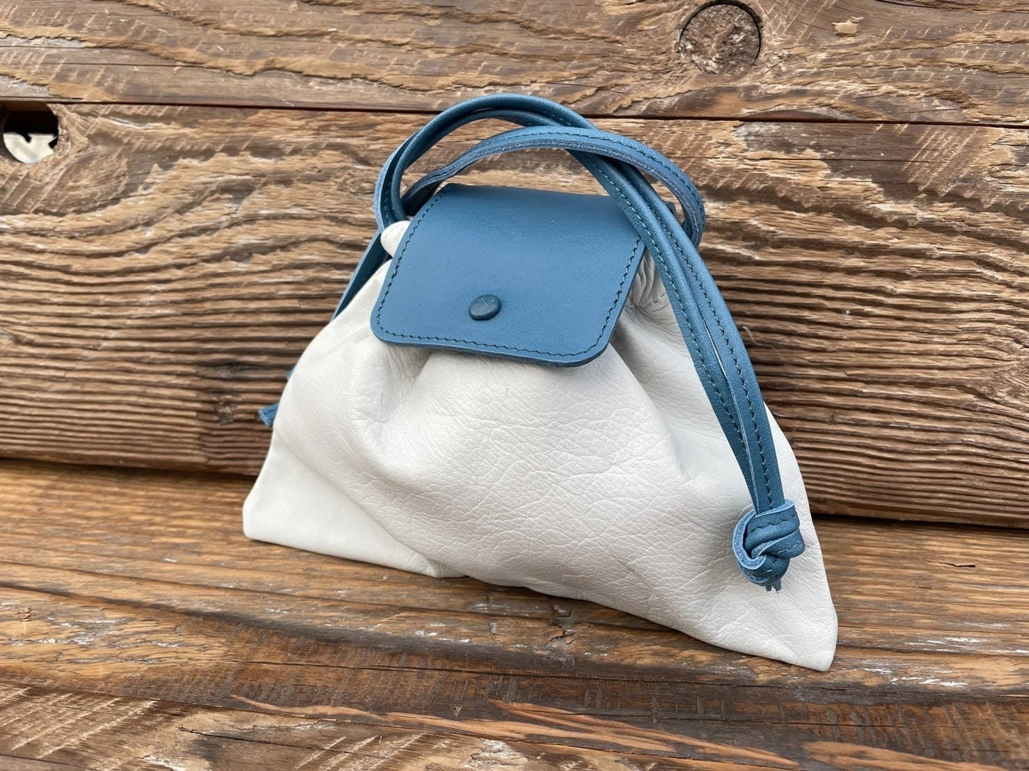 今回のコラボレーションでは、壱岐牛を使ったミニレザー巾着を3色で展開しています。スマートフォンがすっぽり収まるくらいのサイズ感なので、ちょっとしたお出かけ時にも便利ですし、メイク用品のポーチなどとしてもお使いいただけます。縫製はもちろんのこと、壱岐島ファクトリーの皆さんが、一つひとつ丹念な手作業で仕上げてくださっています。
