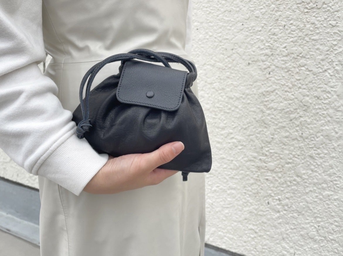 ・持ち手を本体で挟むような作りで、自然とドレープが生まれる上品なシルエット