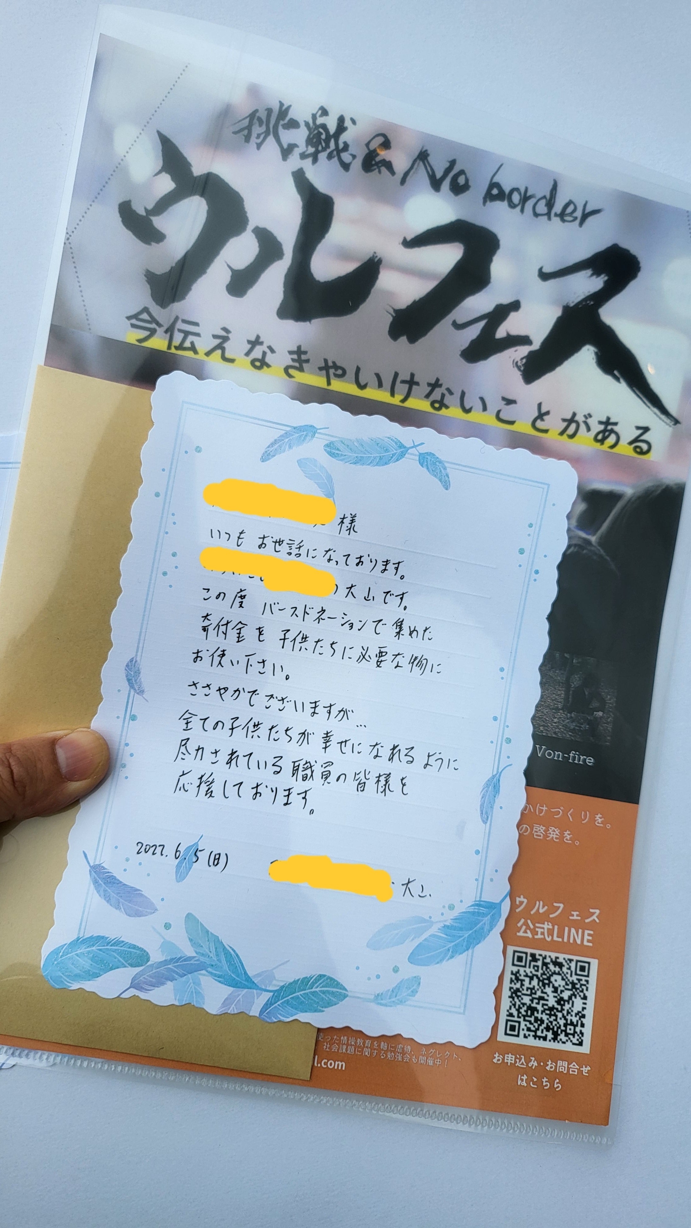 バースドネーションで集まった寄付金を、ウルフェスを開催するきっかけになった児童養護施設さまへお渡ししに行ってきました!!