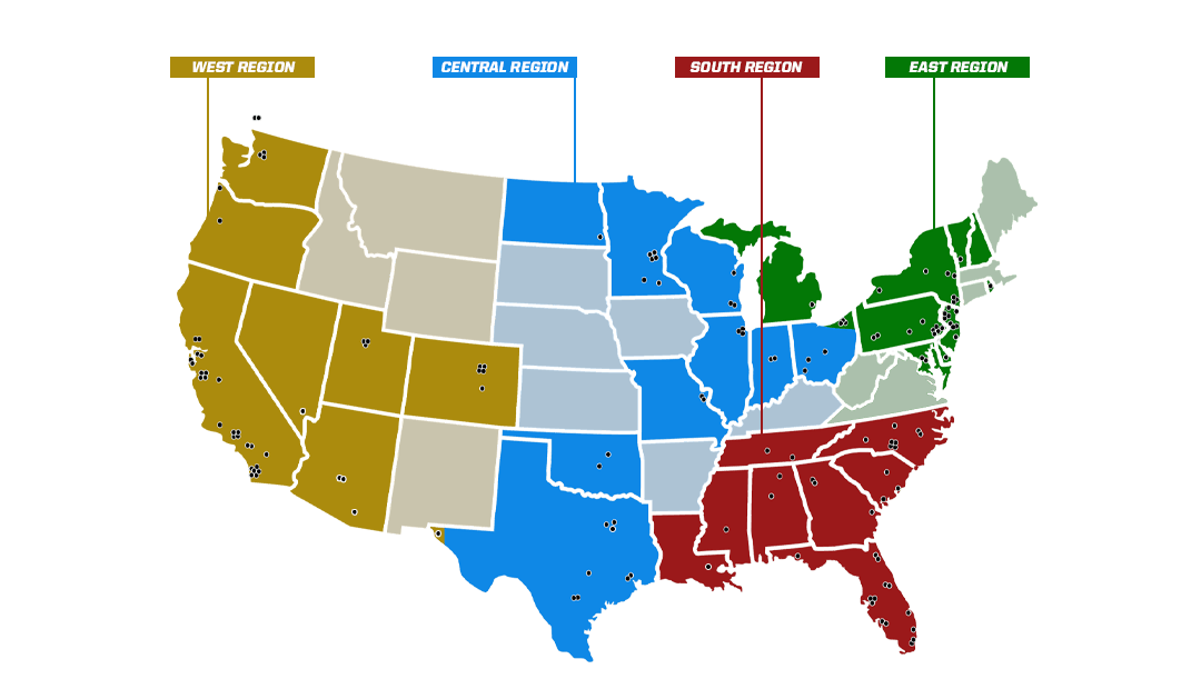 登録チームは現在141チームあり、全米50州あるうちの32州にチームが点在してます。アメリカだけではなく、カナダ・バンクーバーにもチームが存在します。4つの地区の中にカンファレンスが存在し、その中で更に地域ごとにディビジョンとして分かれシーズンを行い、レギュラーシーズンを通しカンファレンスで勝ち上がったチームが、全米1位の座を目指すトーナメントを戦います。