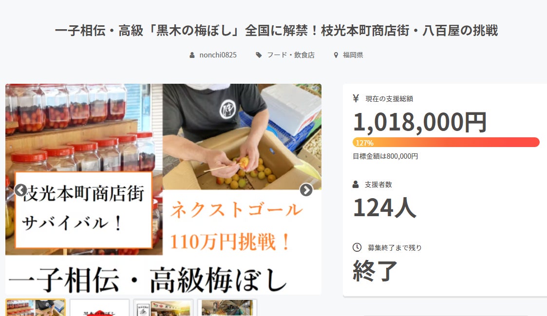 当初から新型コロナはもちろんのこと、社会情勢も重なり我が、枝光本町商店街も苦境でしたが、その状況に大きな変化はあるとは言えません。再びクラウドファンディング限定で、一子相伝の黒木の梅干しを再び全国に解禁し、商店街の生き残り活動を継続します。