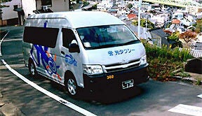 自治体からの協力もあり、平成12年10月31日から枝光ルート・荒手ルート・山王ルート・藤見ルートの5ルートを9人乗りのジャンボタクシーで巡回する“枝光やまさか100円ジャンボタクシー"の運行を開始。この春からは、北九州市からの援助で新たに15人乗りの車輛も新デザインで加わりました。今や地域の無くてはならない足として、活躍中です。(現在は200円に運賃改定)