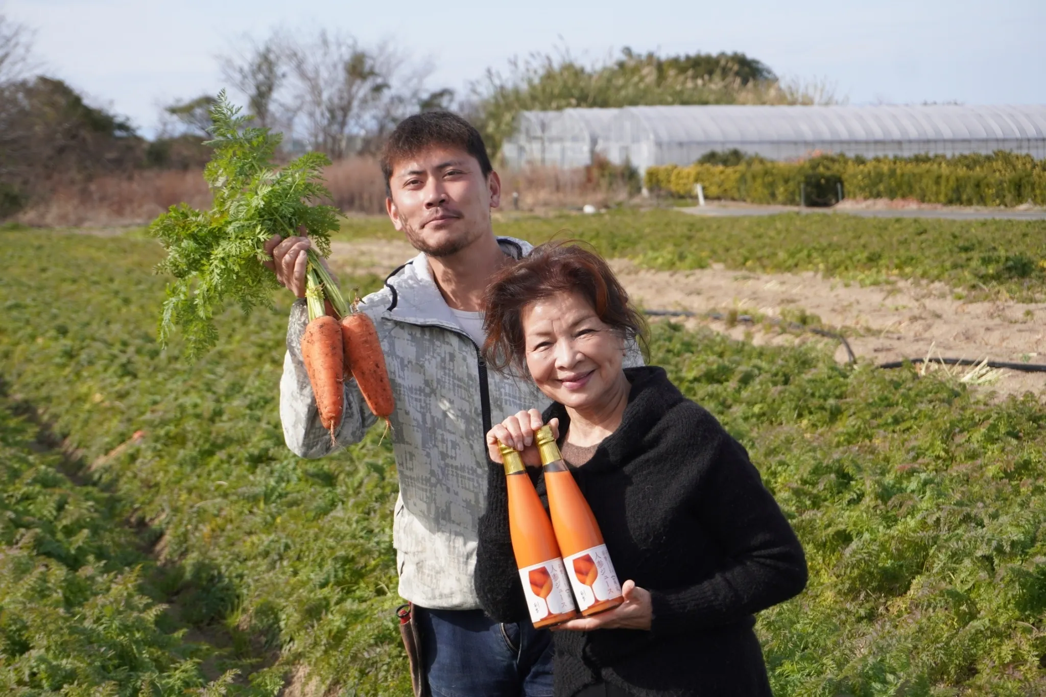 土造りからこだわり抜いたことで人参特有のクセを抑えて、甘みを引き出すことに成功した「彩誉(あやほまれ)」を、もっと皆様に手軽に美味しく召し上がっていただくため、旬の味をそのままジュースにしました。