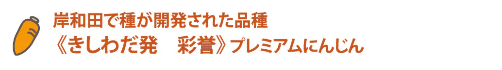岸和田市の圃場で開発されたびっくりするほど甘く「衝撃のにんじん」とも呼ばれる人参「彩誉(あやほまれ)」を彩誉(あやほまれ) 誕生の地として市の新たな特産とするため、 官民連携で盛り上がりをつくりながら、新たなブランド野菜「きしわだ発 彩誉(あやほまれ)」として全国展開を目指しております。