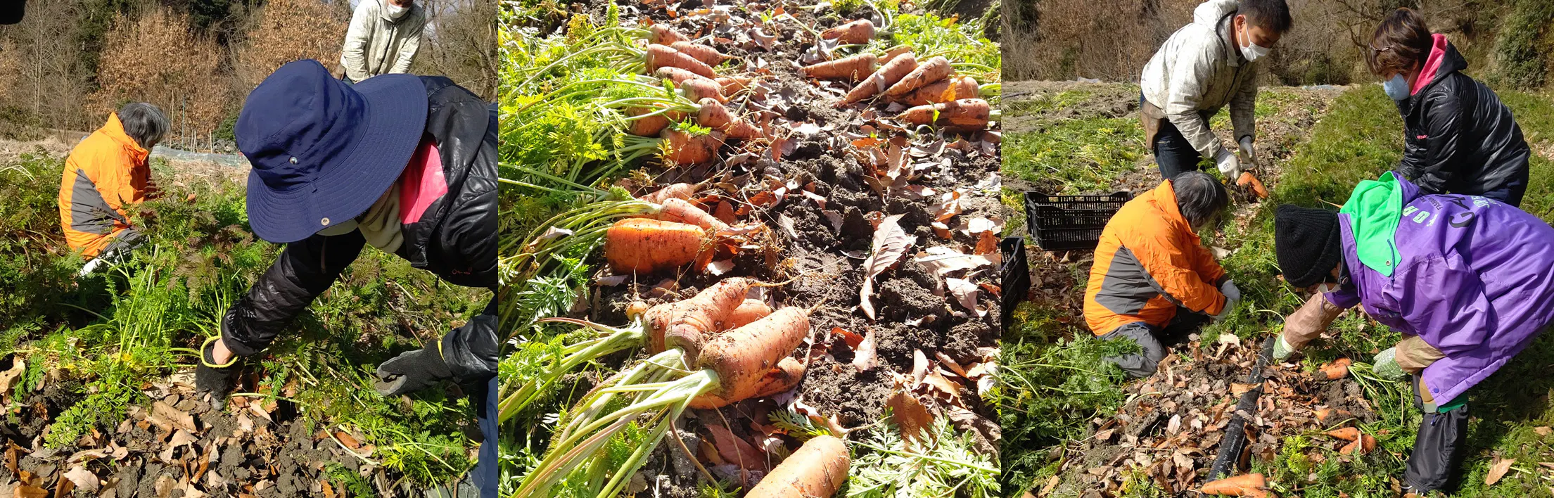 1年をかけて農薬を使わずに土壌を育て、養分の高い土壌を作り上げることで、甘いにんじんが作られます。製法としては9月の初旬ごろより栽培を始め1月中旬に収獲をし、空いた土地に春は燕麦を栽培し育った麦をすぐに土壌に戻し、夏はソルゴー・トルバムなどを栽培し育った作物を土壌にそのまま戻し土の栄養分として活用します。