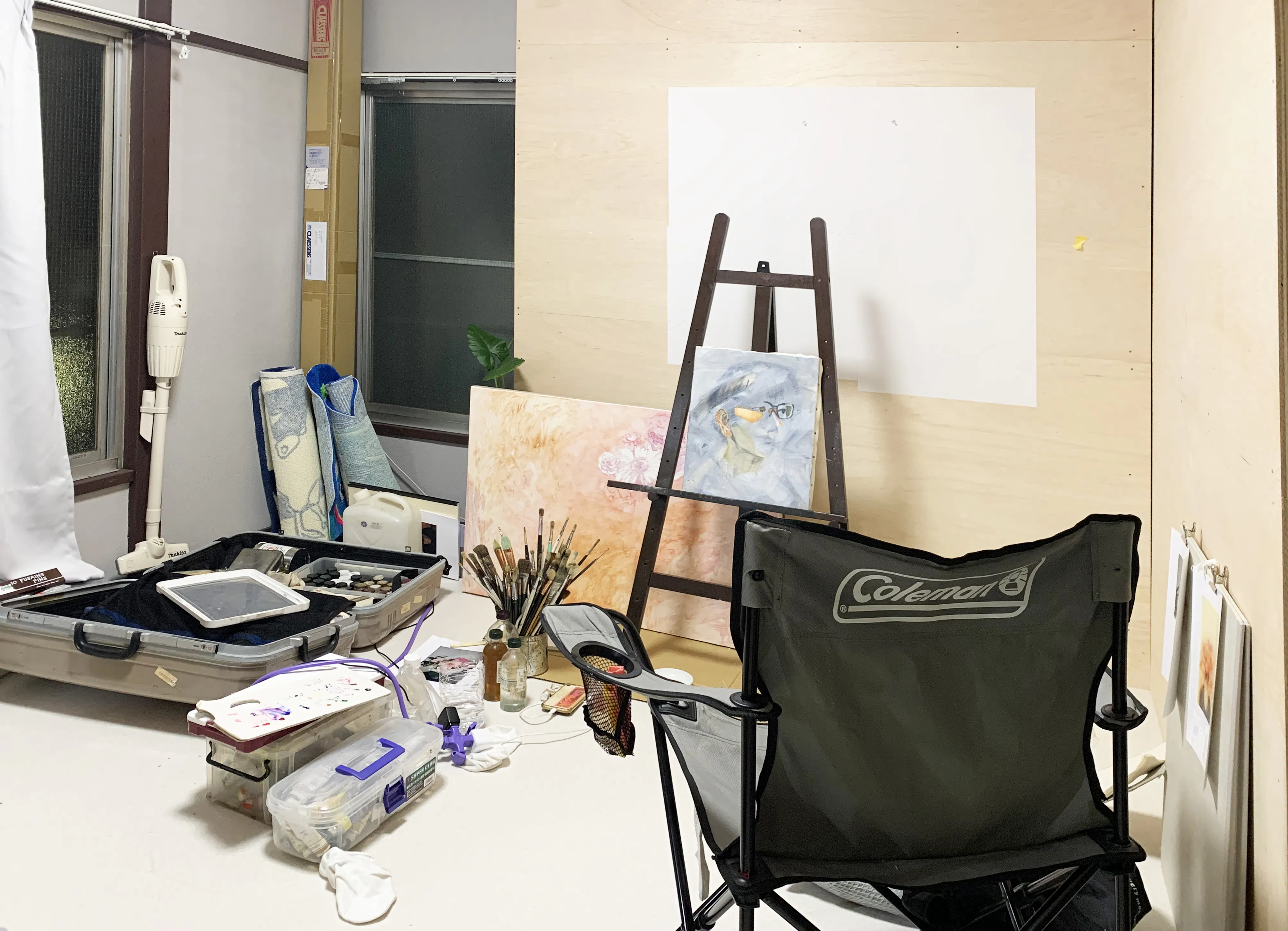 今回の報告写真は髙木彩圭の制作風景になります。現在、油絵の制作をしている状況です。