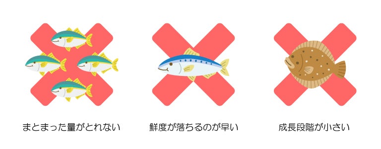 世界的に漁獲量の減少が続くなか、量を規制しても網で水揚げすれば、その中に本来とれなくてもよい小さな魚などの未利用魚までどうしても入ってしまいます。