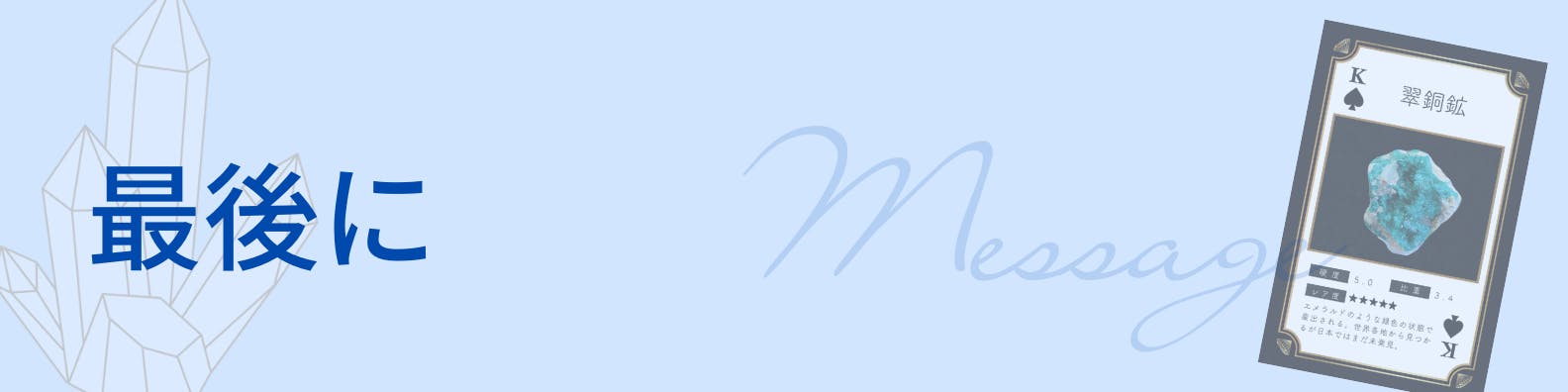 このトランプを通じて、日本の鉱物好きの皆さんと繋がることができているのが本当にうれしいです!!
