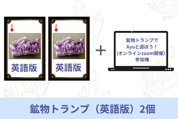 リターン②:新装版「鉱物トランプ」英語版1つと、「鉱物トランプでAyuと遊ぼう!」オンラインzoom開催参加権です。