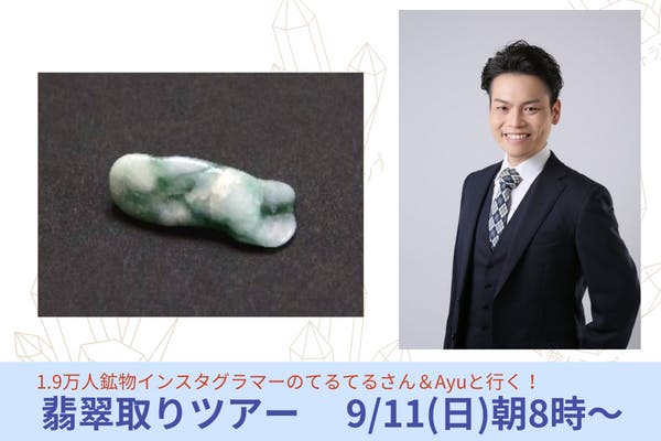 リターン追加:1.9万人鉱物インスタグラマーのてるてるさん&Ayuと行く!翡翠取りツアー