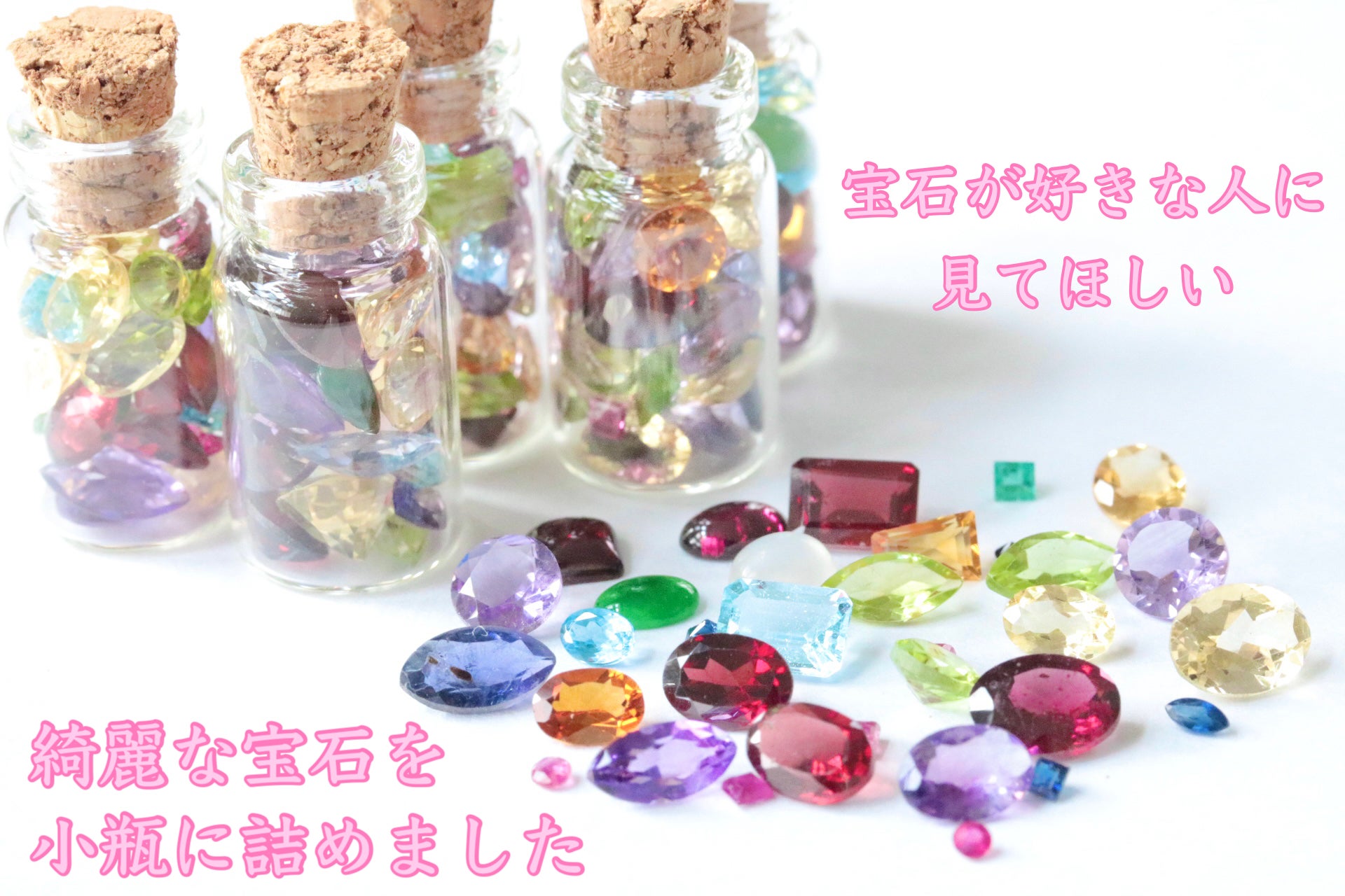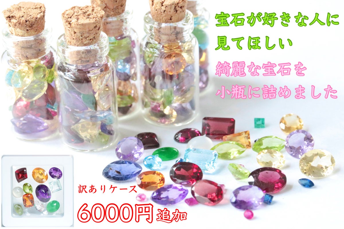 子どもの頃から宝石の写真を眺めるのが好きで、30歳を越えた今も、疲れた時に宝石の画像を検索して癒されているくらいには大好きです。パワーストーンも原石も好きですが、やはり一番はルースでしょうか。瓶に詰まったルース、楽しみです。