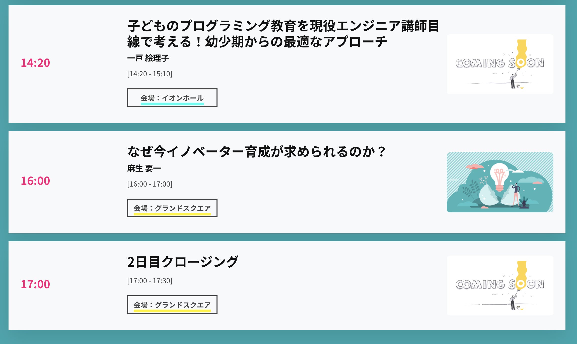 今回追加したのは、3F「イオンホール」で開催するセッション情報です!