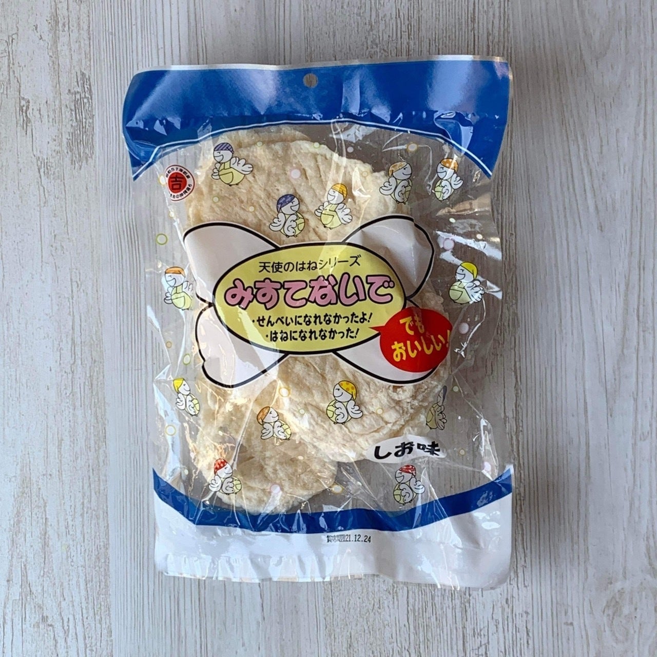 沖縄の人気のお菓子「塩せんべい」と塩せんべいの製造過程でできる「天使のはね」その間にあたるのがこのお菓子です。フードロスをなくしたい!という想いから生まれたお菓子です。