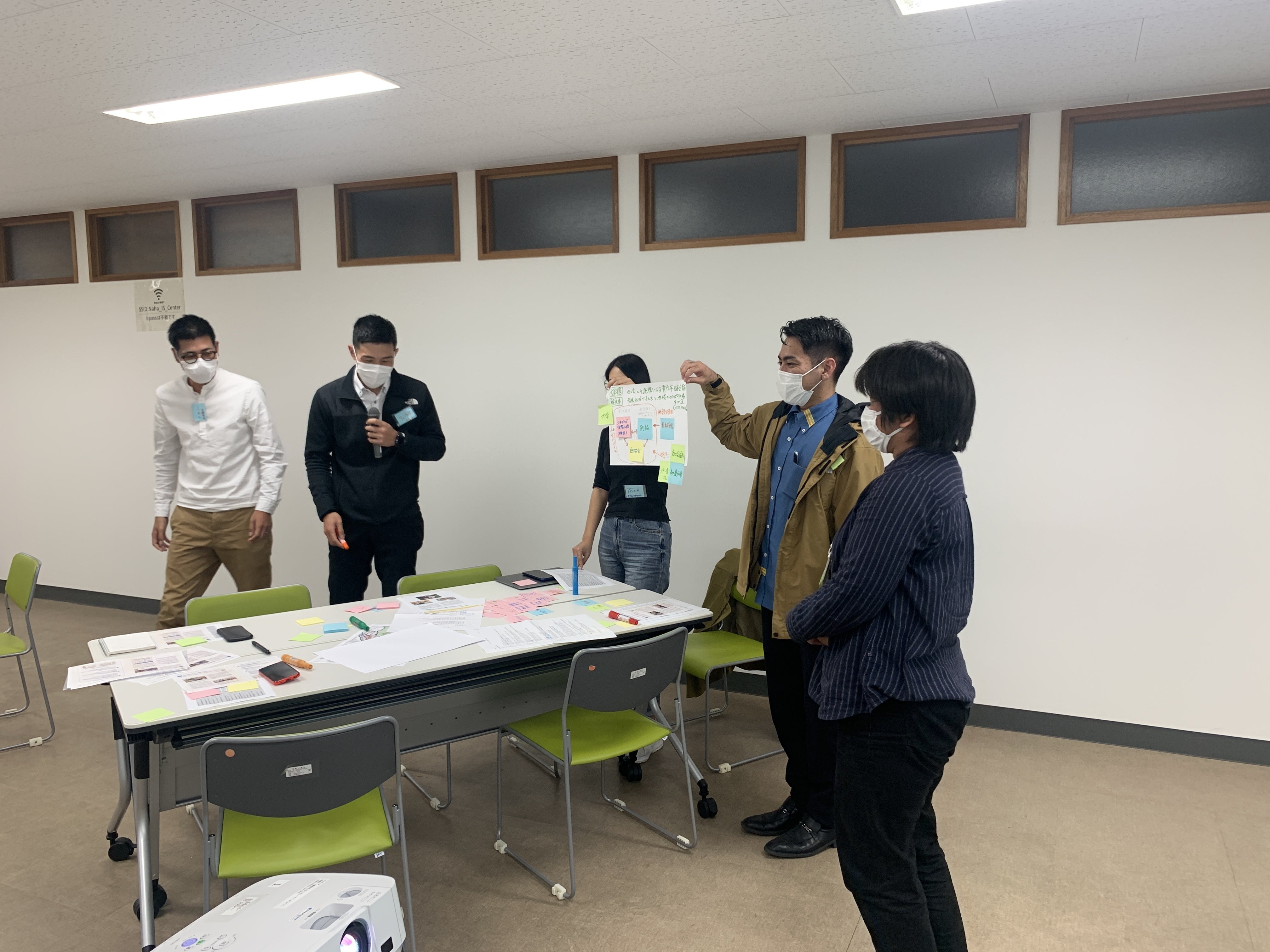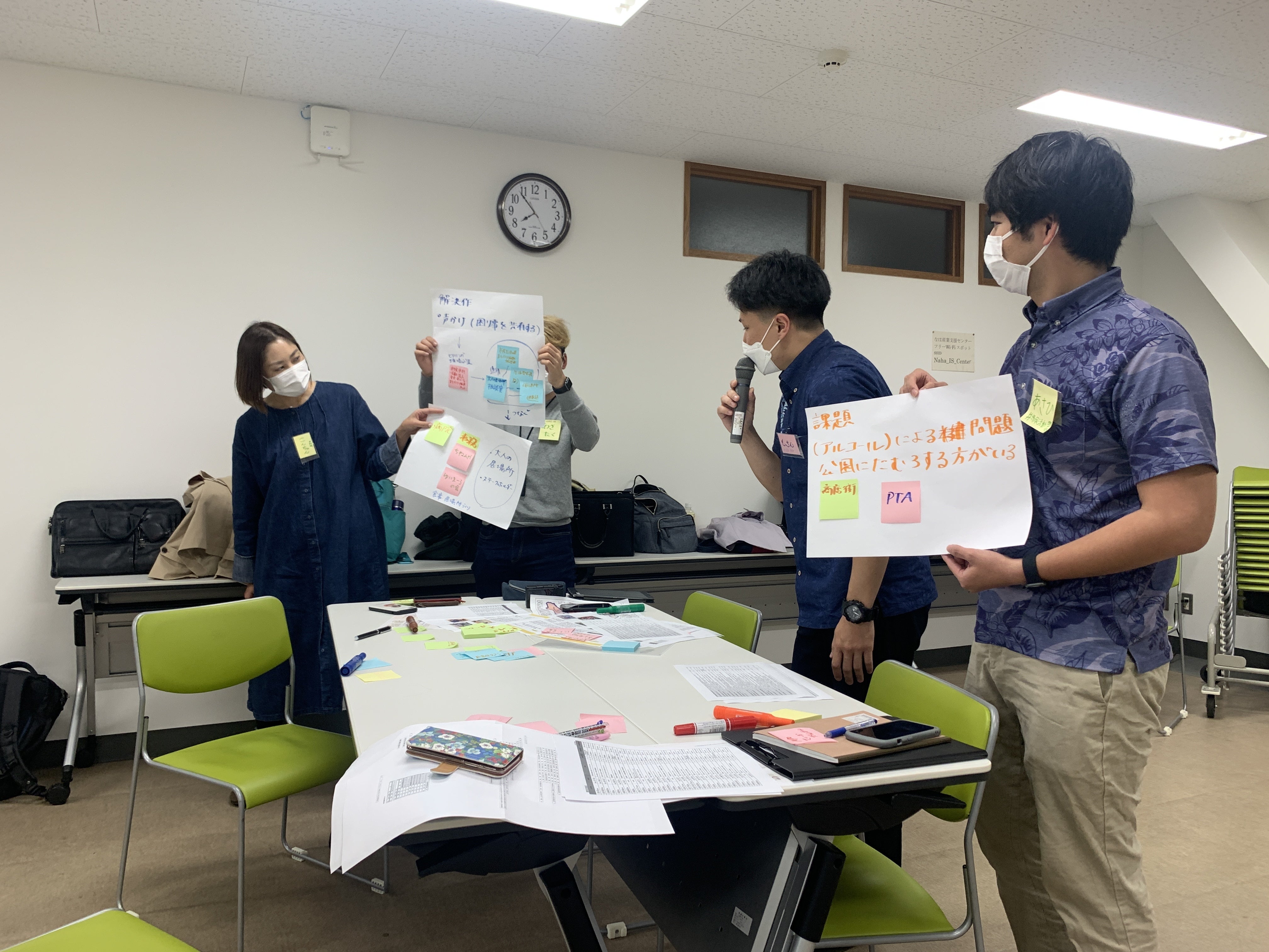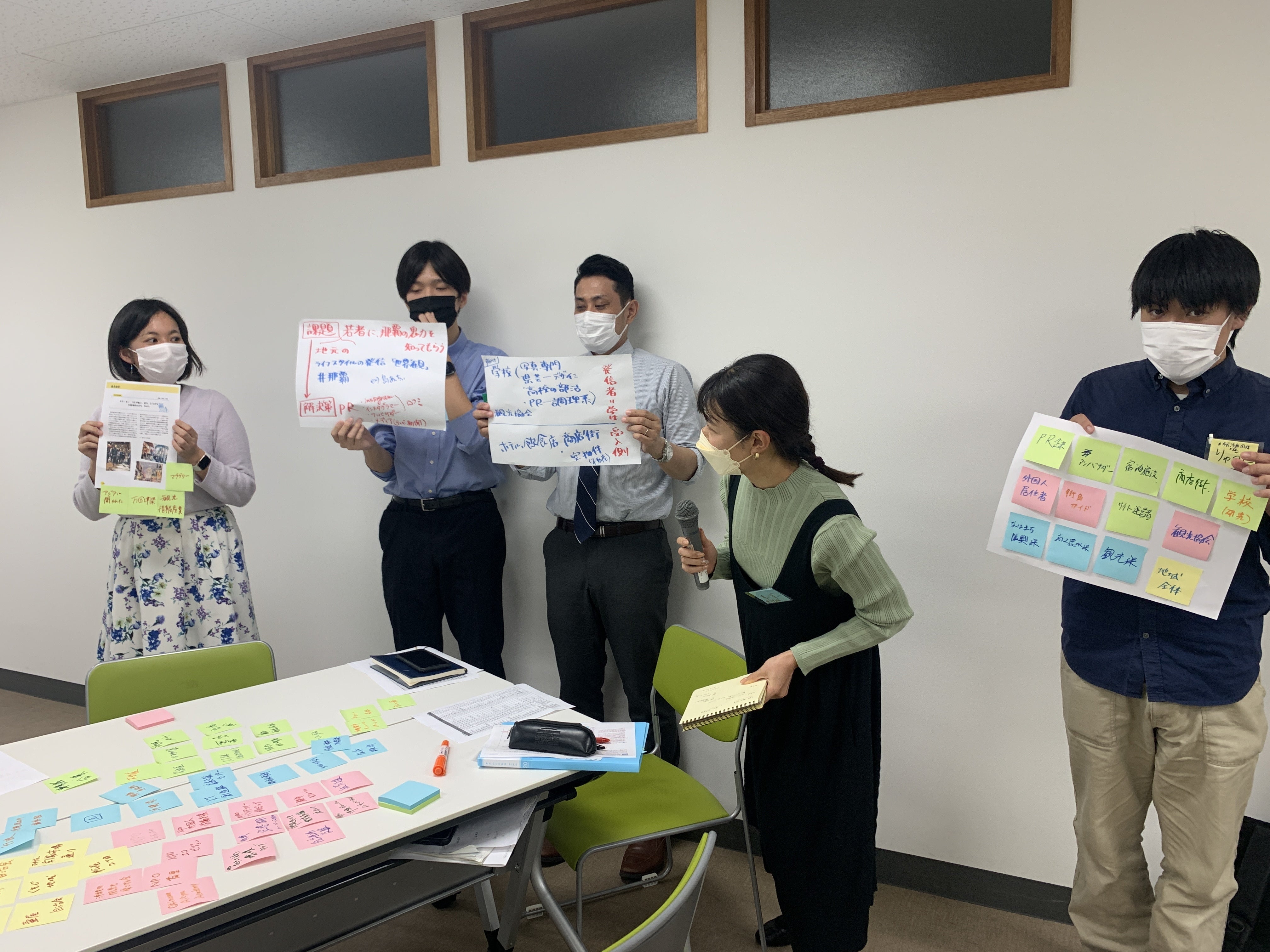 那覇市の商店街のPRの課題について、ハッシュタグの活用に関するアイデアを出していました。