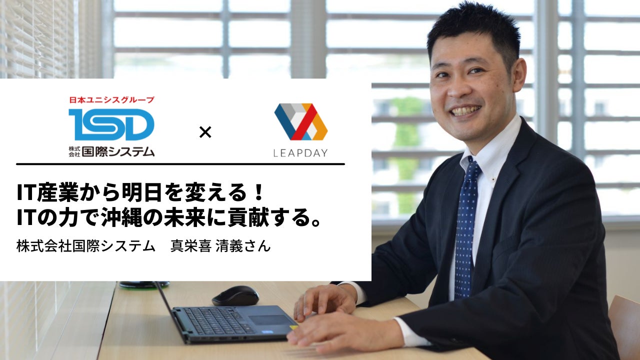 LEAP DAYは、多くの協賛企業の皆様に支えられて運営をしております。そして今回のLEAP DAYのコンセプトは「明日は変えられる気がする」協賛企業の担当者のみなさんに、「明日は変えられる気がしたエピソード」をインタビューしてきました!今回お話を伺ったのは、株式会社国際システム システム一部 部長代理の真栄喜 清義さんです!ITを使うことでこれまで「できない」と思われていたことが「できる」に変わるんです!と語る真栄喜さん。コロナをきっかけに、「明日は変えられる気がする」と思ったエピソードを語ってくださいました。インタビュー記事はこちら!https://2021.leapday.jp/blog/20220301/インタビュアーからのおまけ情報お子さんと一緒に、朝方YouTubeでサッカーを観るのが趣味だそうです。その他にも、時事ネタをお子さんに喋るようにしているそうです。