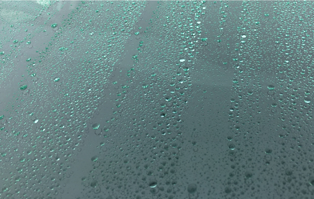 高い撥水性でガラス面についた水を水玉にして雨天時の視界を良好にします。