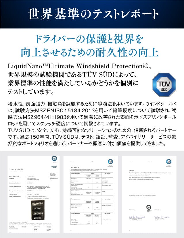 本製品は自動車のフロントガラス用となっていますが、LIQUIDNANO™シリーズのモバイル用ではさまざまな業界の大手有名企業でも採用されており、欧米を中心に数百万個の出荷実績があります。