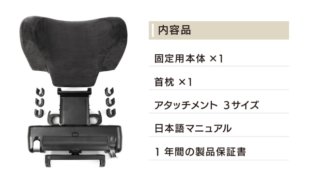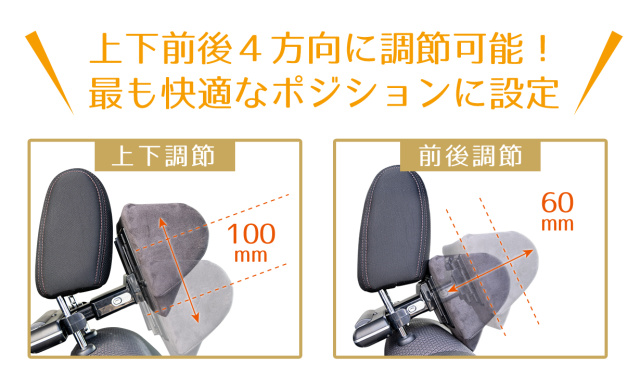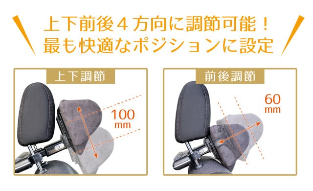 自分のお好みで最も快適な位置に調整が可能です。固定式ヘッドレストの難点を解決、前後上下調整、枕の位置を自由に変えられます。