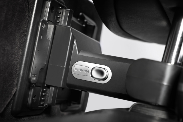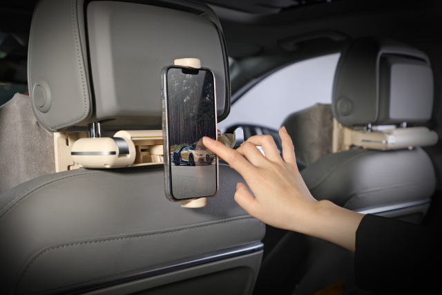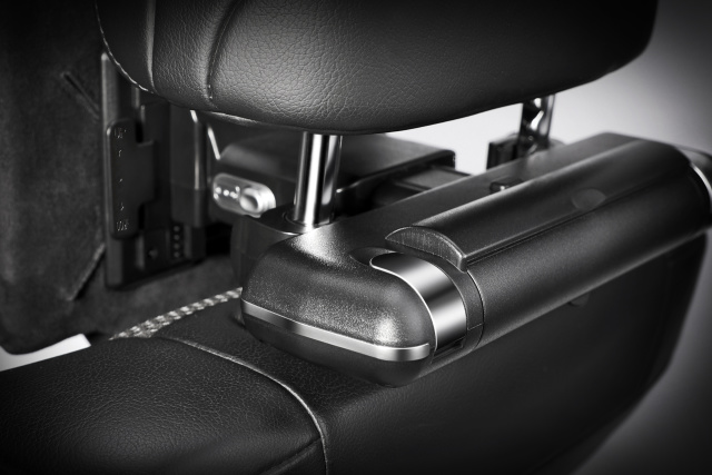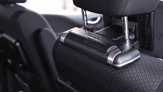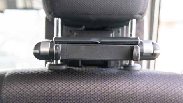 スマートフォンやiPadなどのタブレットを固定できるホルダーが付いているので後部座席でも退屈しません。