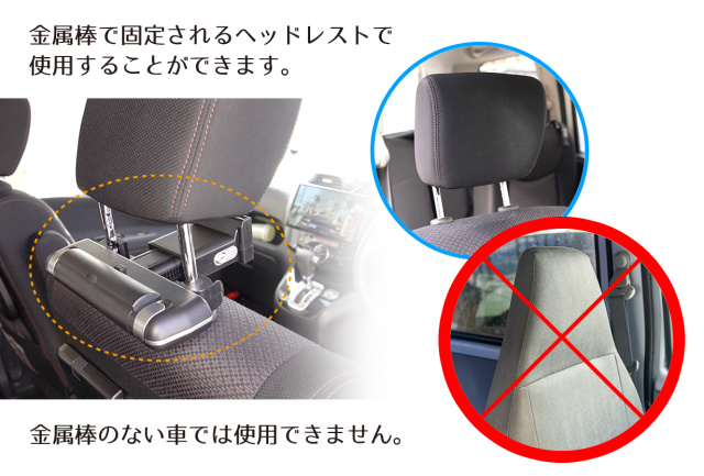 ※お車のヘッドレスト支持棒に合う物をご使用ください。
