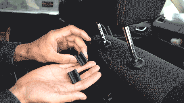 1. ヘッドレストを適当な高さまで上げ、適切なゴムパッドを選択します。